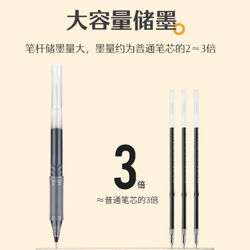 国风桶装刷题笔速干顺滑黑笔高颜值按动中性笔ST0.5黑色笔芯水性圆珠笔小学生专用考试笔非按斤卖碳素签字笔