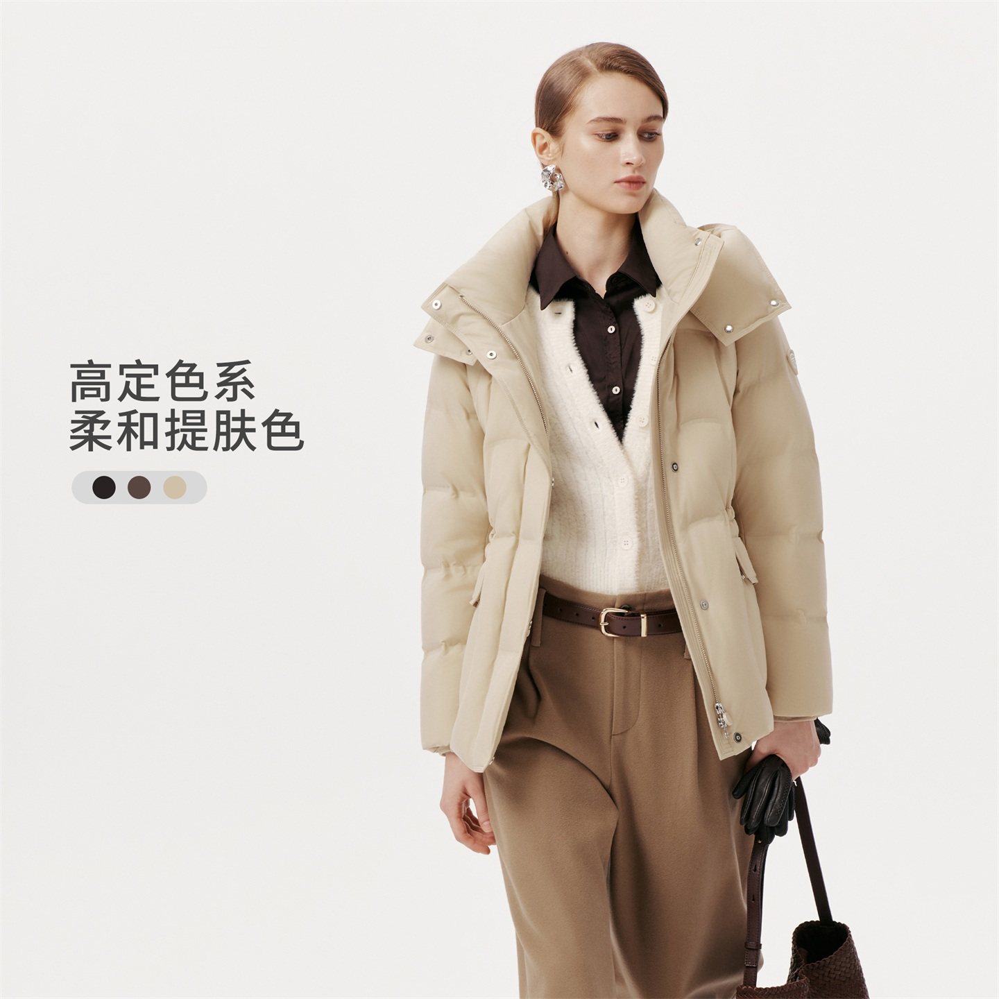 坦博尔25冬季新款90鹅绒可脱卸帽羽绒服女士保暖百搭好穿时尚外套