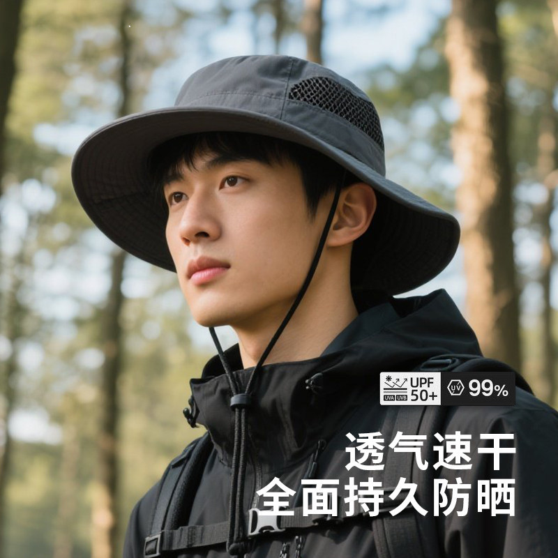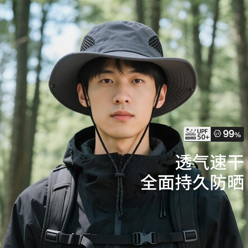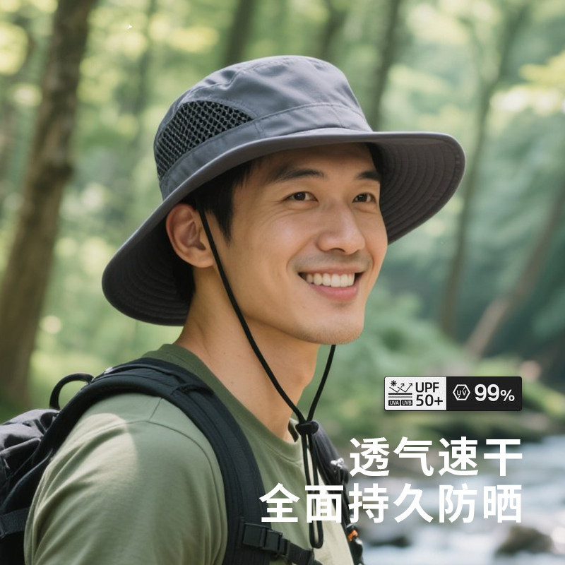 夏季渔夫帽户外男士帽子防晒紫外线透气钓鱼遮阳登山大檐帽徒步