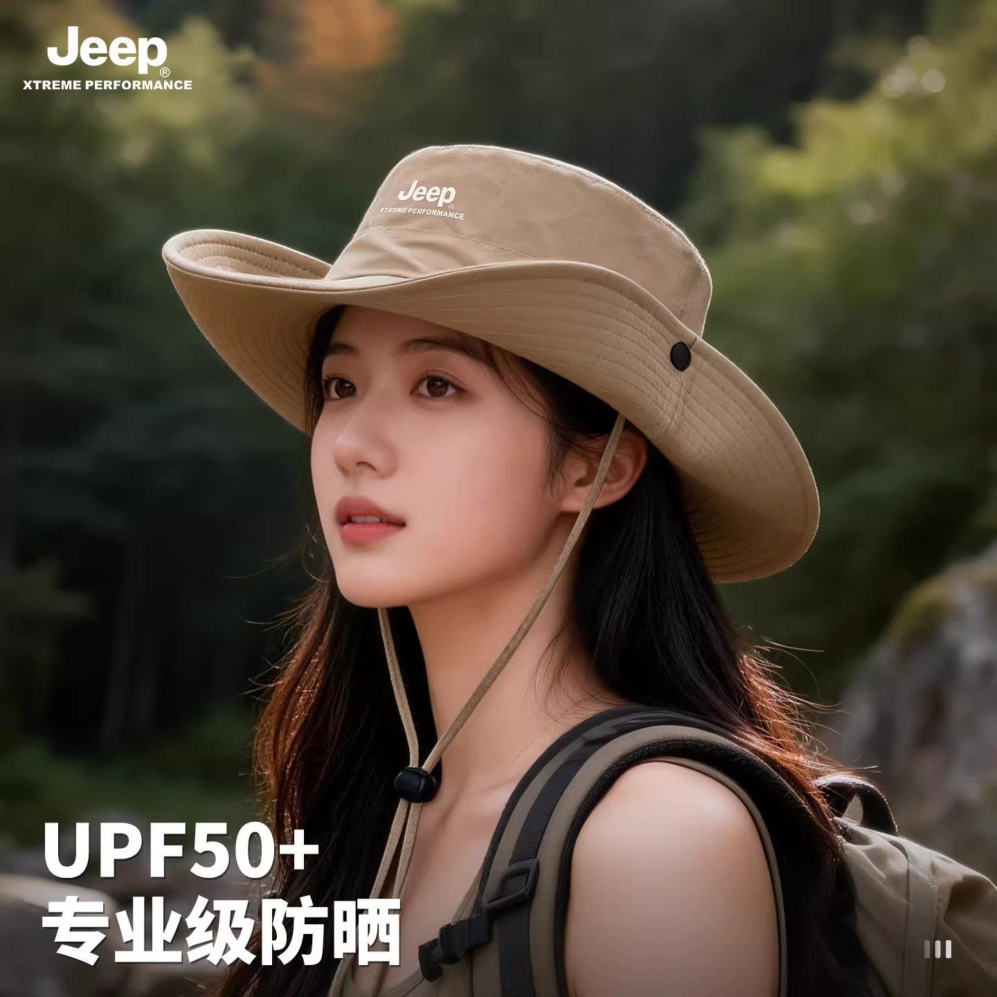 jeep吉普帽子女士夏季2026新款户外遮阳帽登山防紫外线大檐渔夫帽