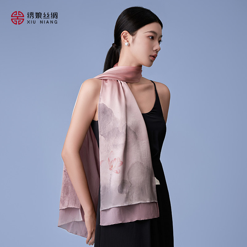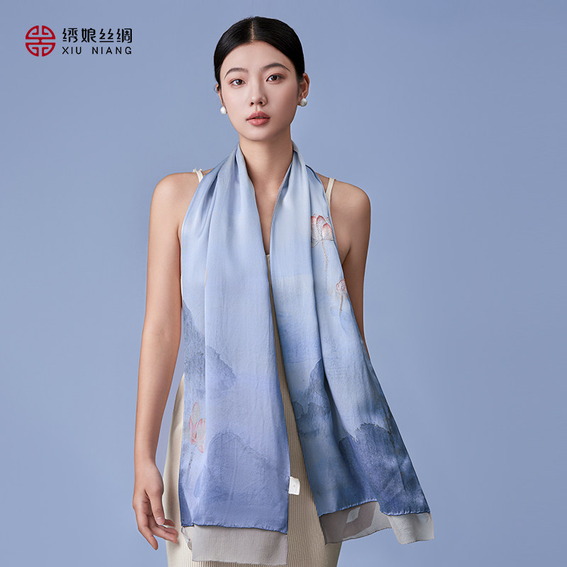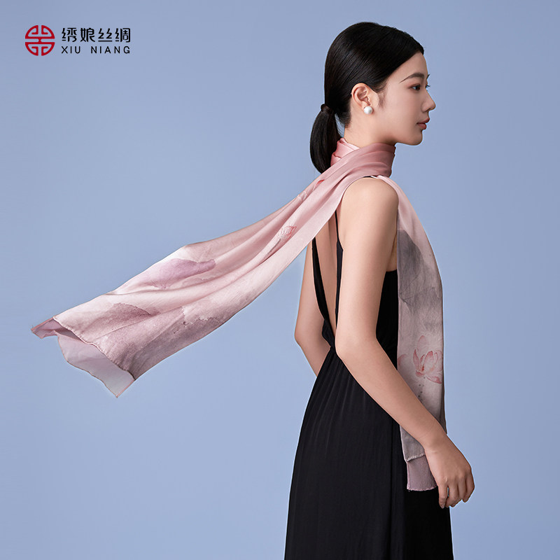 绣娘丝绸真丝手工苏绣丝巾女新款桑蚕丝披肩围巾高级感新中式礼物
