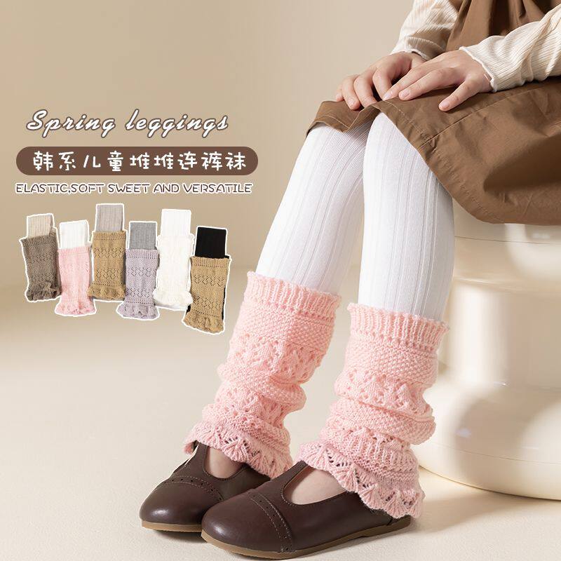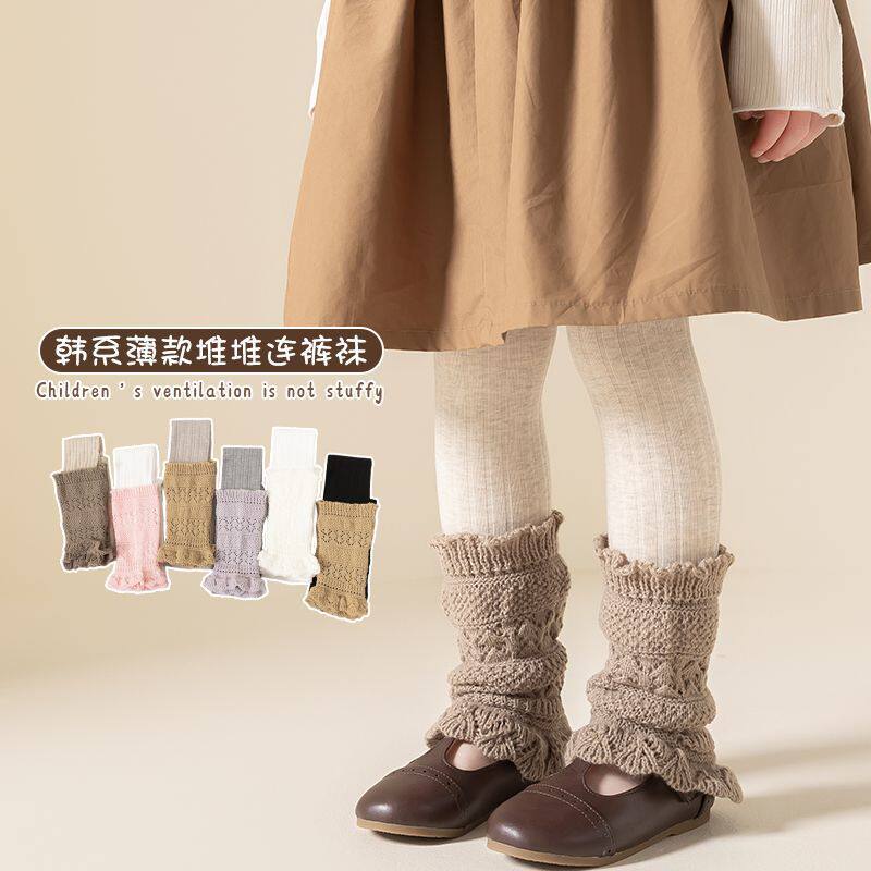春秋新款女童拼接针织袜套堆堆裤中大童打底裤洋气条纹宝宝九分裤