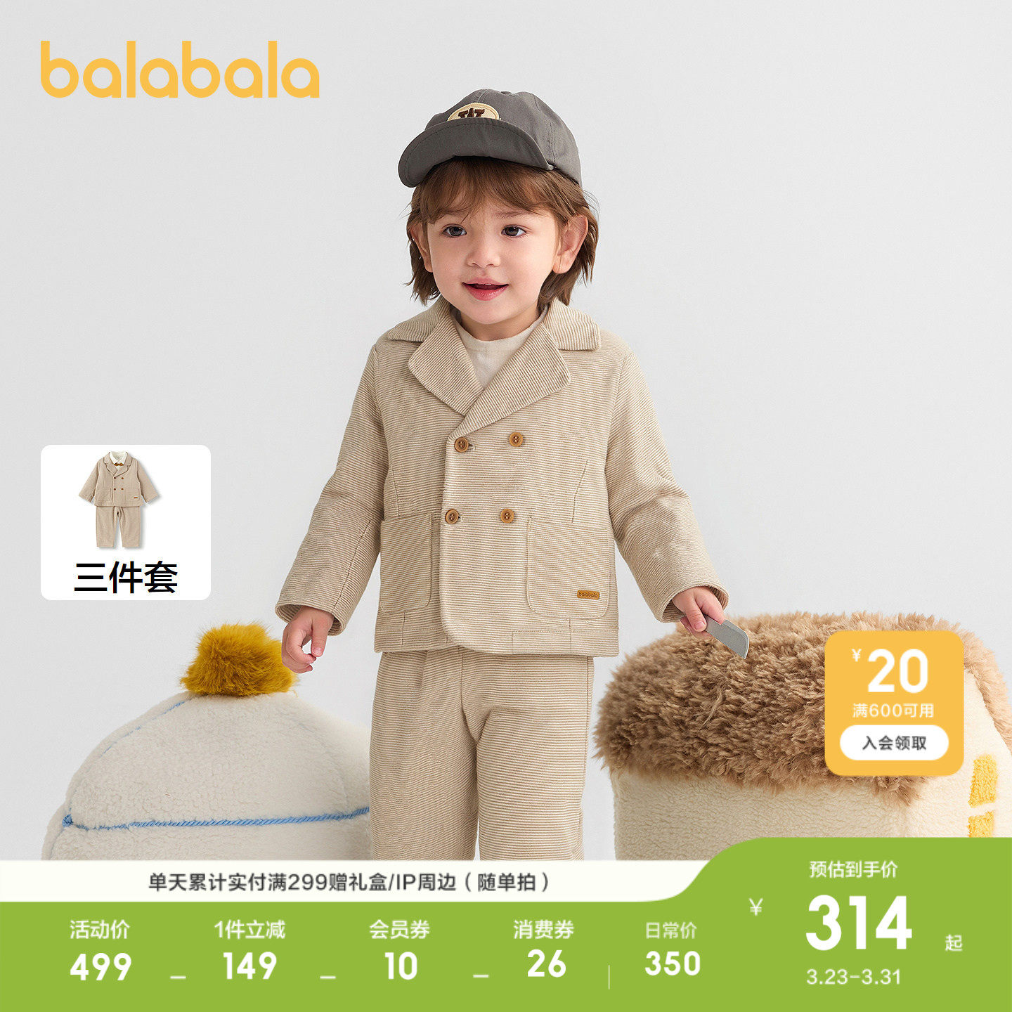 【商场同款】巴拉巴拉男童套装正肩西装三件套2026休闲秋冬装百搭
