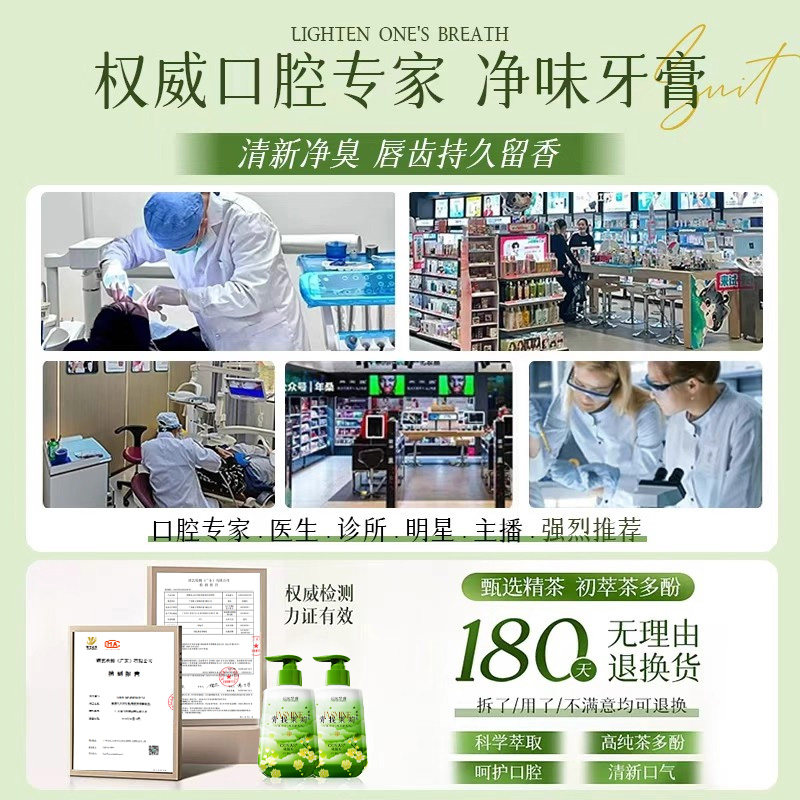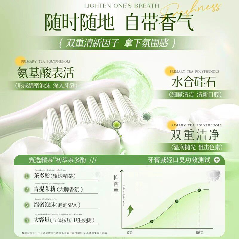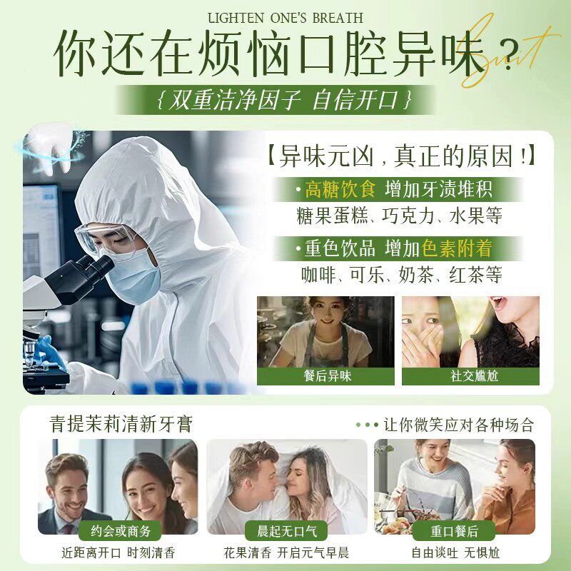 茉莉花香牙膏按压式除异味去黄去烟渍口臭口气清新成人女男士专用