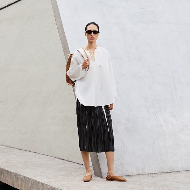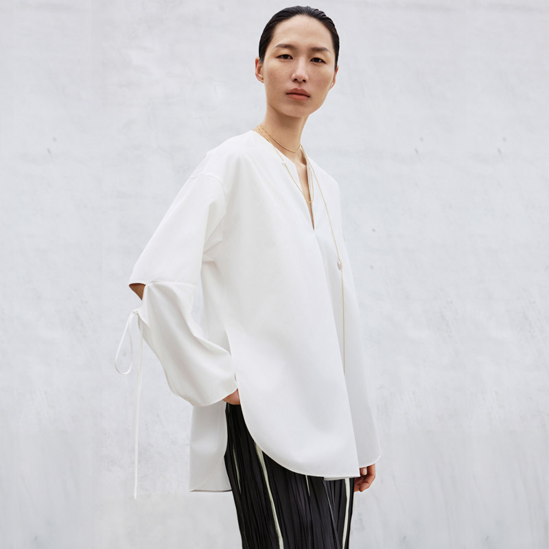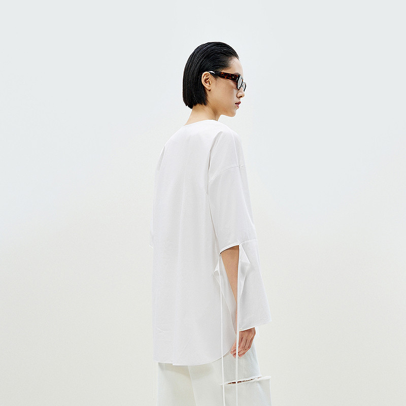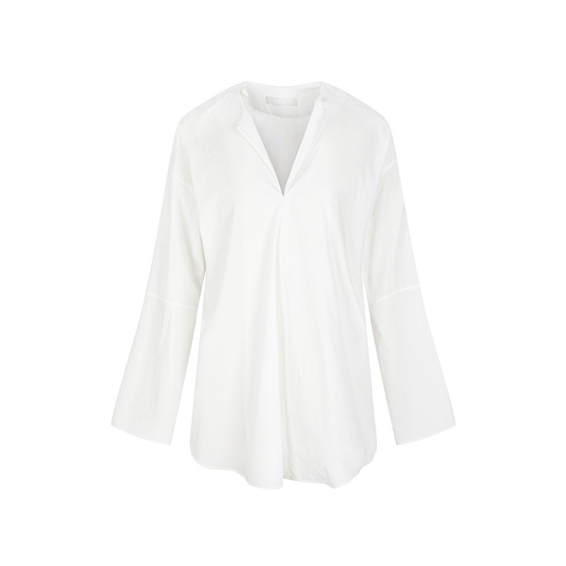 LESS春新中式长袖衬衣女无领设计感建筑解构宽松白衬衫2P3213850