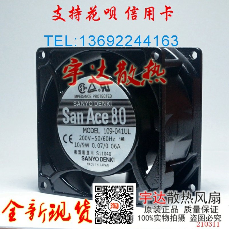 109-041UL AC200V 原装三洋SANYO 80*80*42MM 铝框设备风扇
