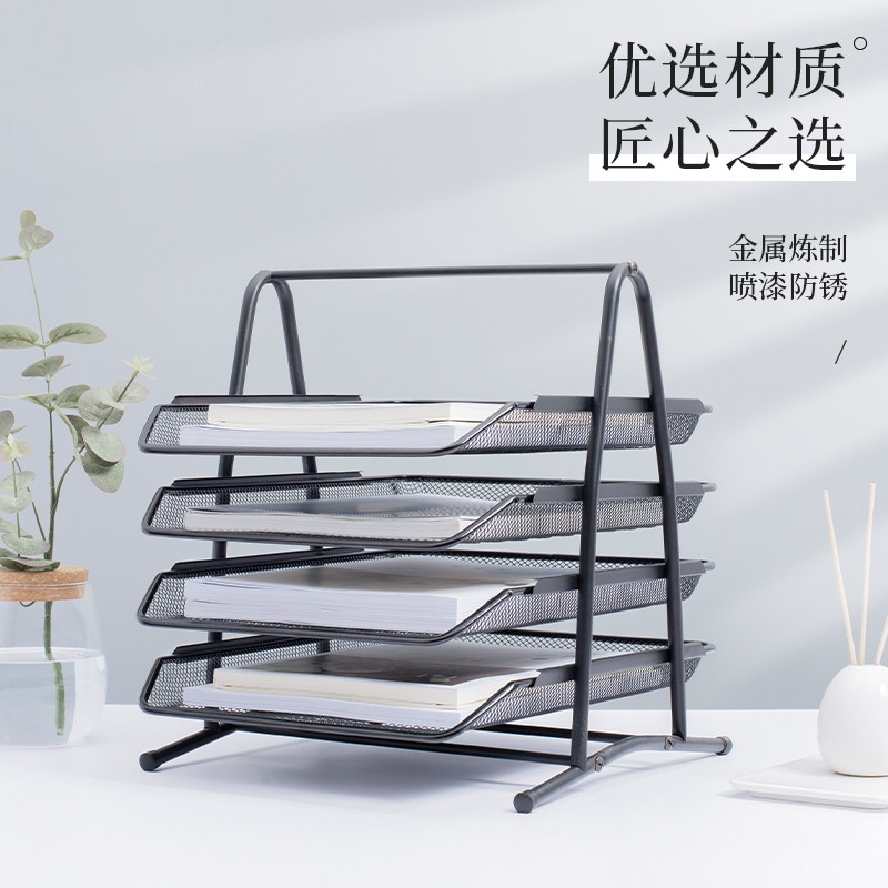 网状文件架二层三层四层文件座资料篮收纳框架整理置物架金属档案
