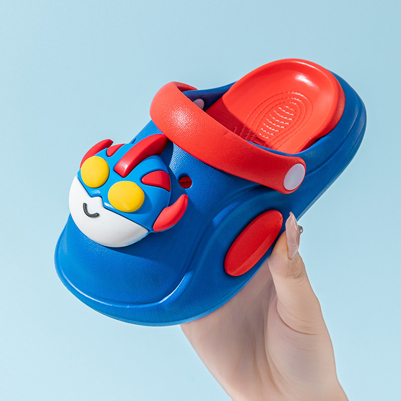 新款机甲超人EVA儿童洞洞鞋夏季男女童鞋拖鞋包头轻便沙滩鞋防滑