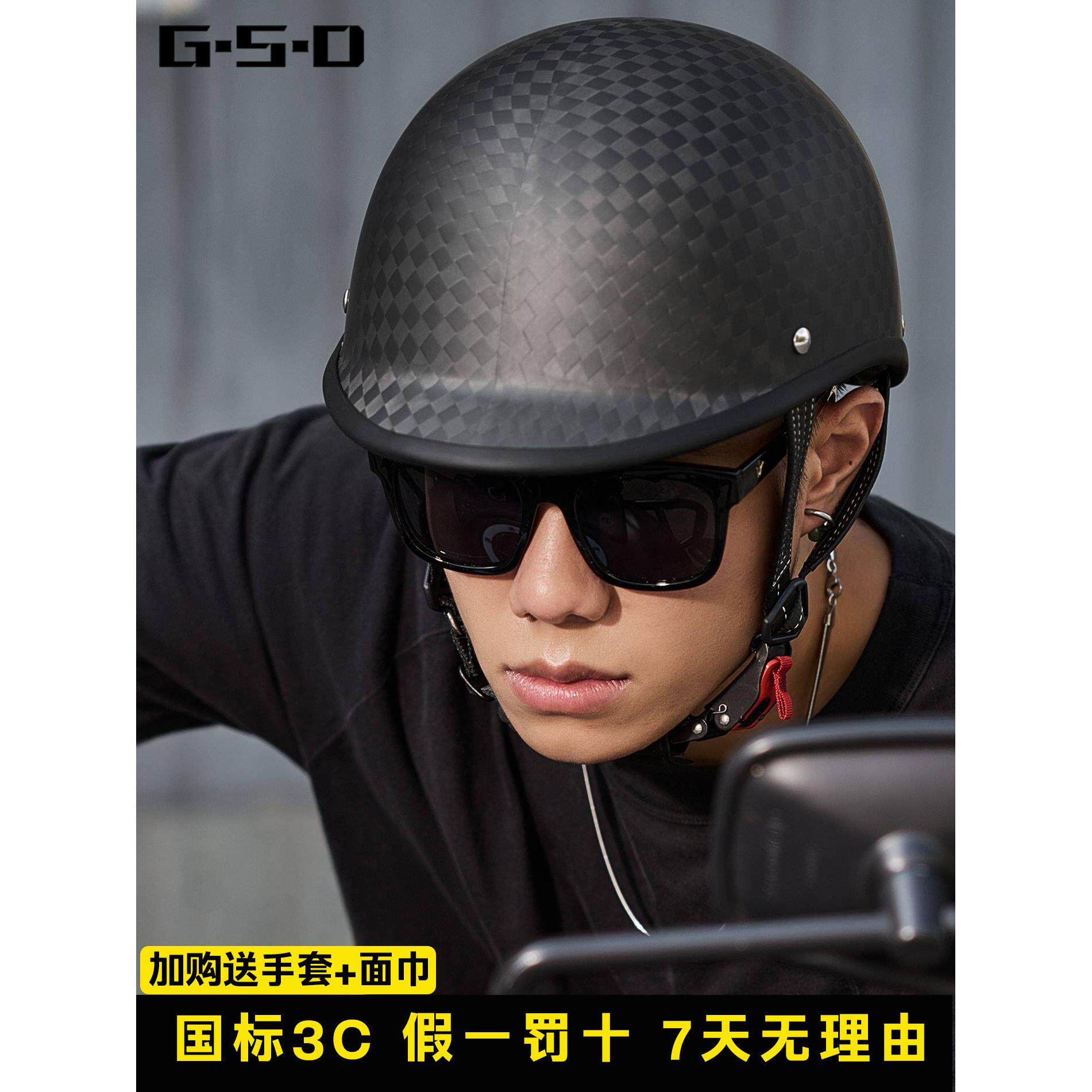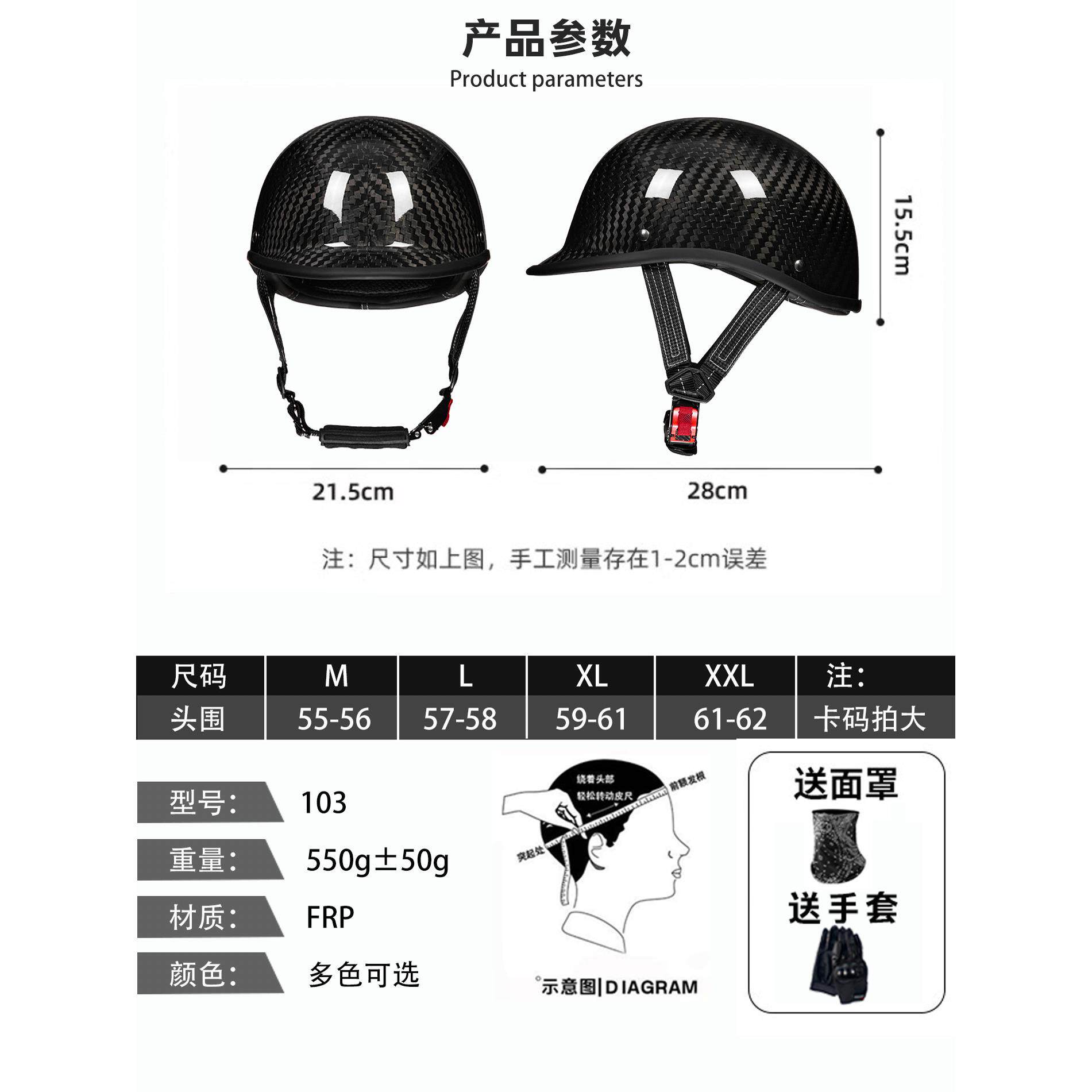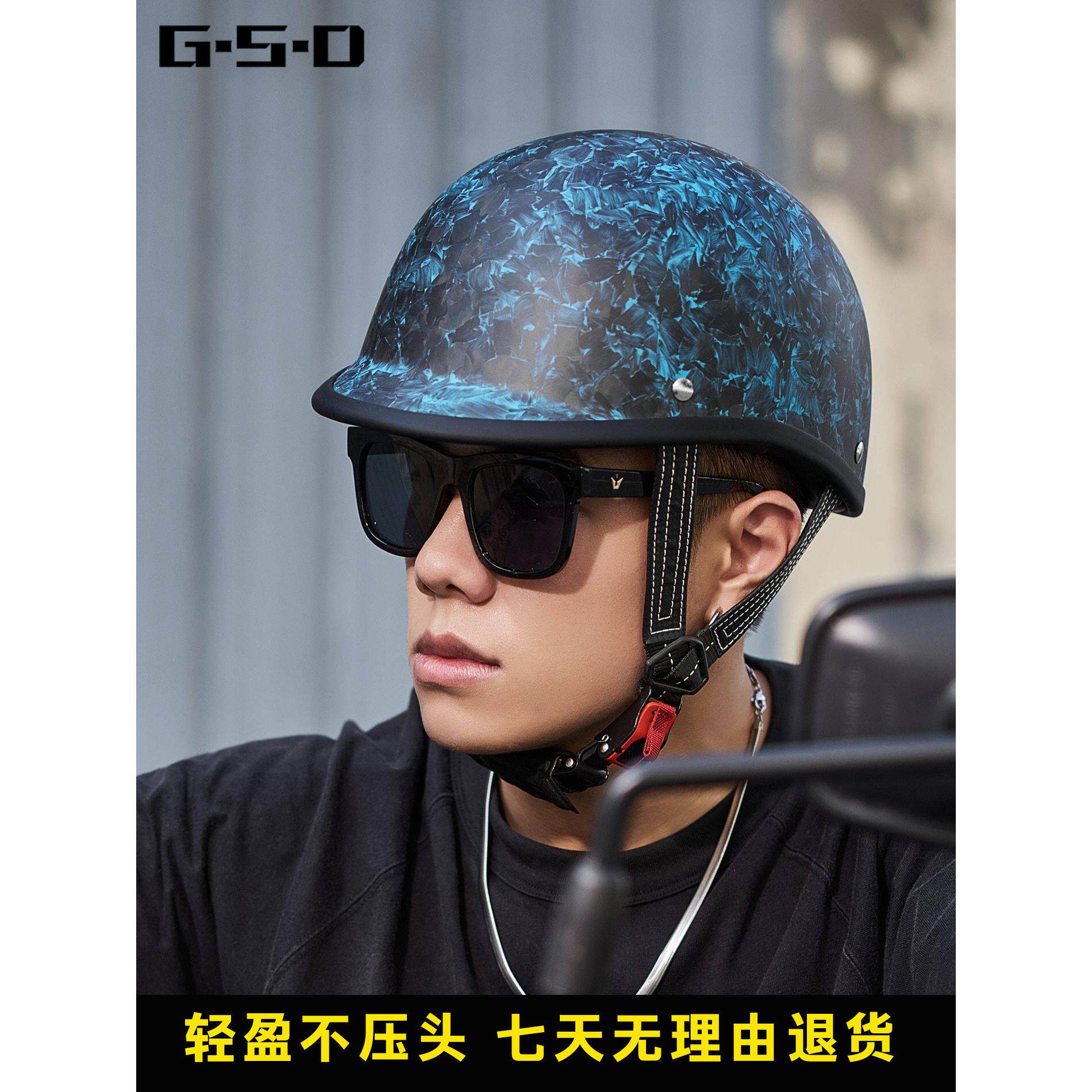 摩托车半盔电动车女碳纤维瓢盔巡航男哈雷复古机车电动车夏季头盔