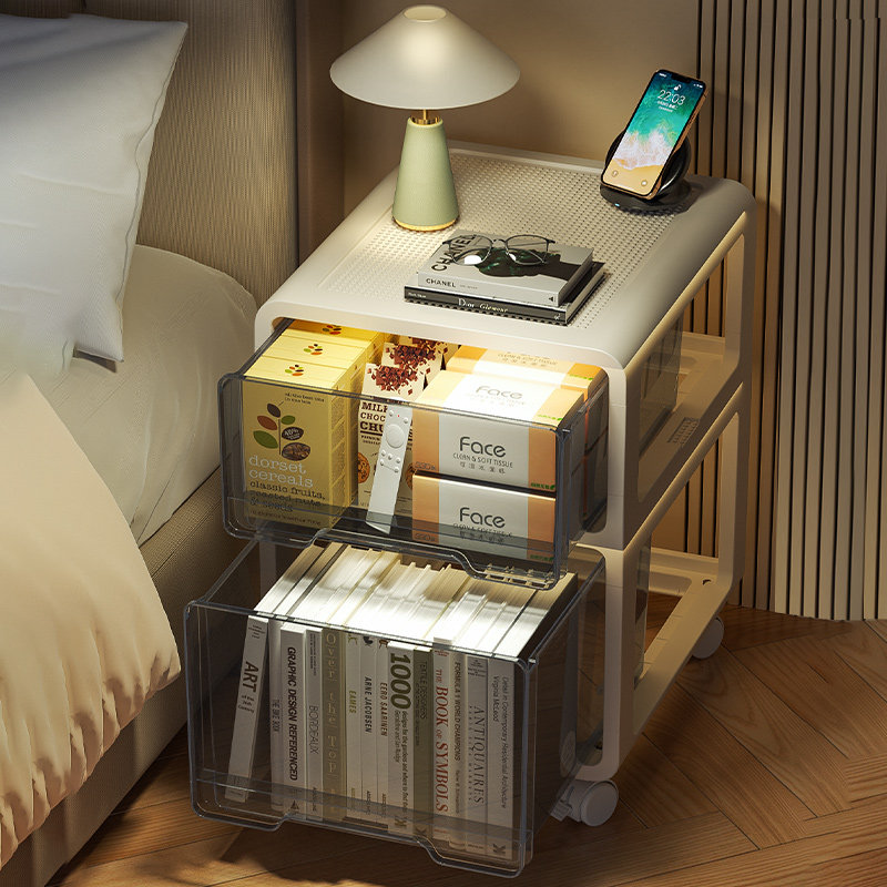 kaman床头柜塑料抽屉式家用零食储物箱卧室收纳柜子多层置物边柜