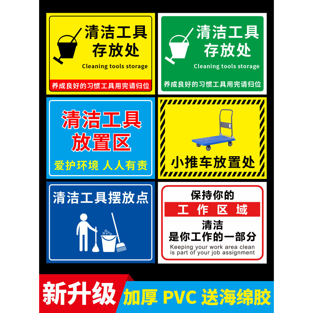 清洁工具标识牌5s6s管理标识牌贴4d厨房管理标识牌用品放置区存放处提示牌工厂车间保持清洁标志牌仓库警示牌
