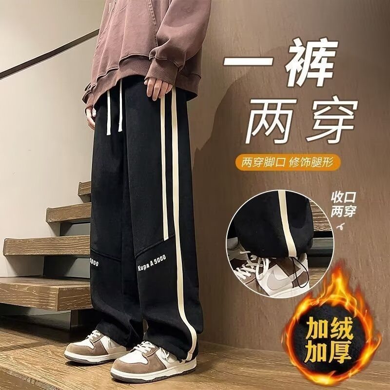 2025秋冬款加绒休闲裤子男孩青少年潮流帅气直筒长裤百搭男装卫裤