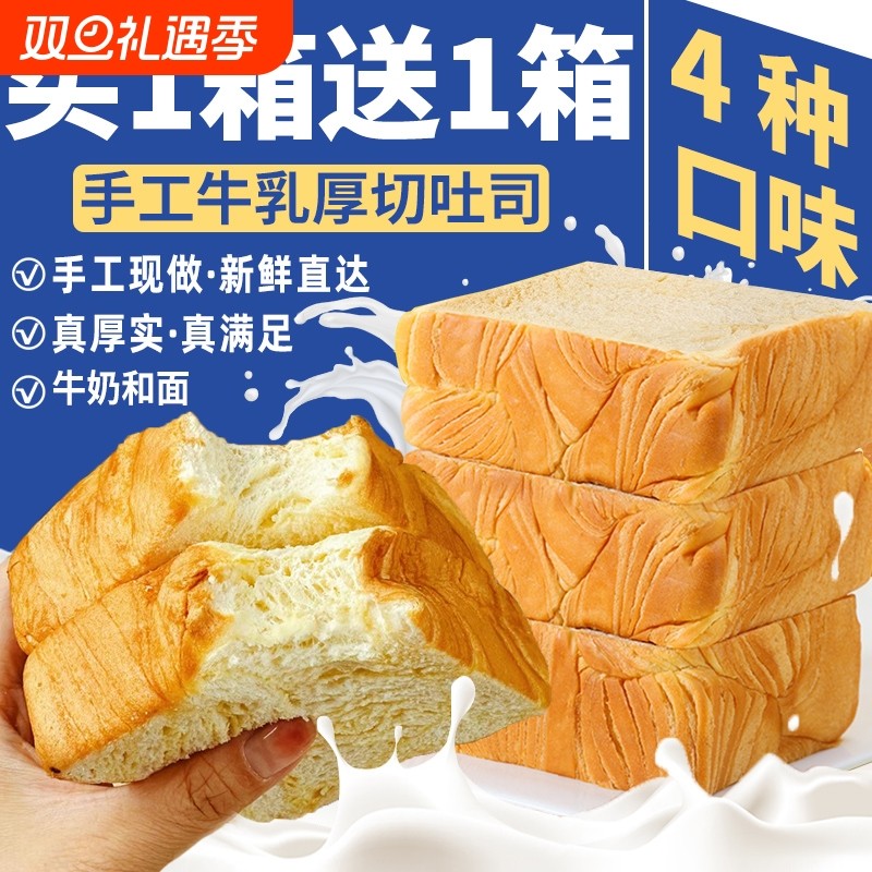 厚切吐司面包早餐切片整箱牛乳手撕学生营养代餐夜宵充饥饱腹零食