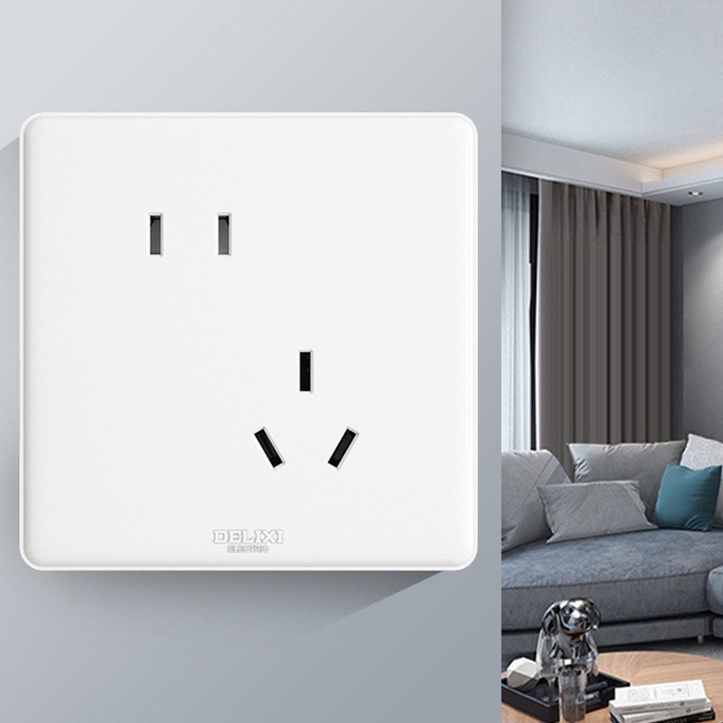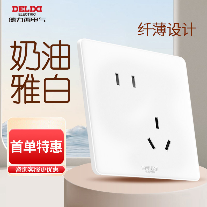 德力西奶油风开关插座一开五孔家用空调16A面板86型暗装墙壁开关