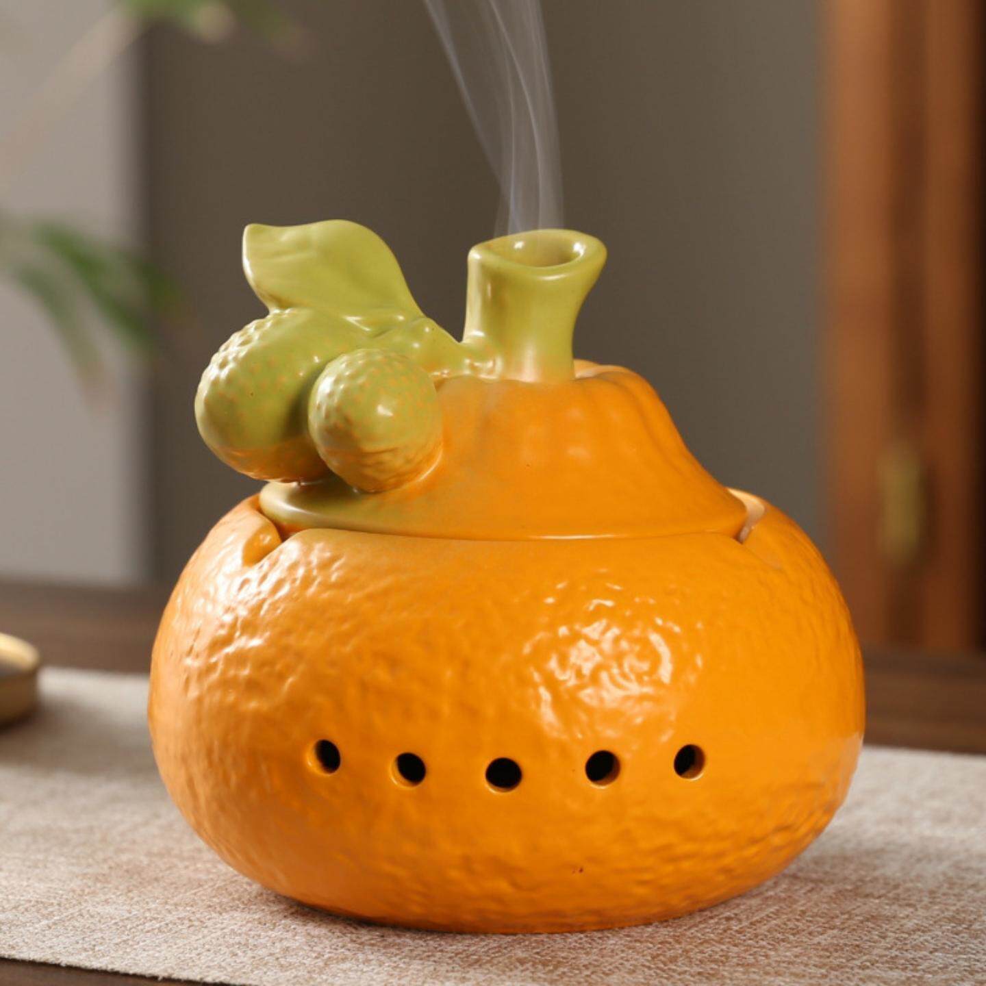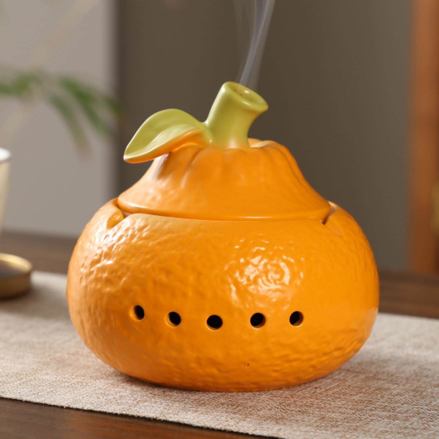 陶瓷家用橘子薰炉大橘大利盘香炉家用室内香薰炉沉檀艾香水果丑橘