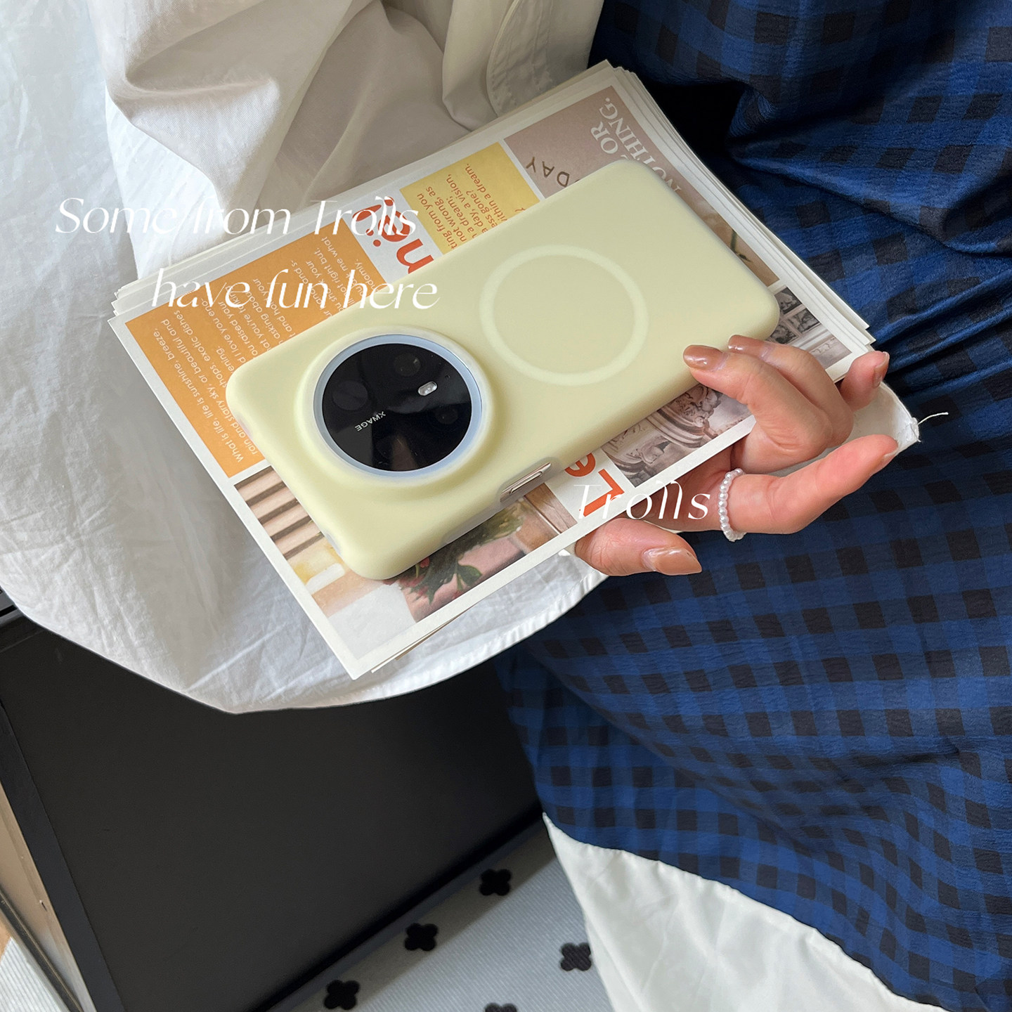 Trolls自制|糯叽叽半透芝士液态硅胶磁吸手机壳清新ins奶油黄保护套适用华为pura80Pro苹果17小米15vivooppo