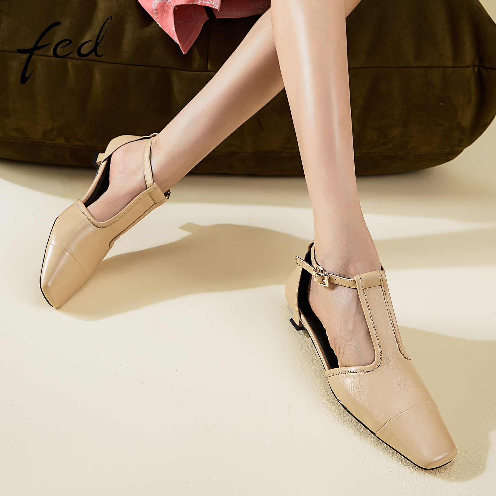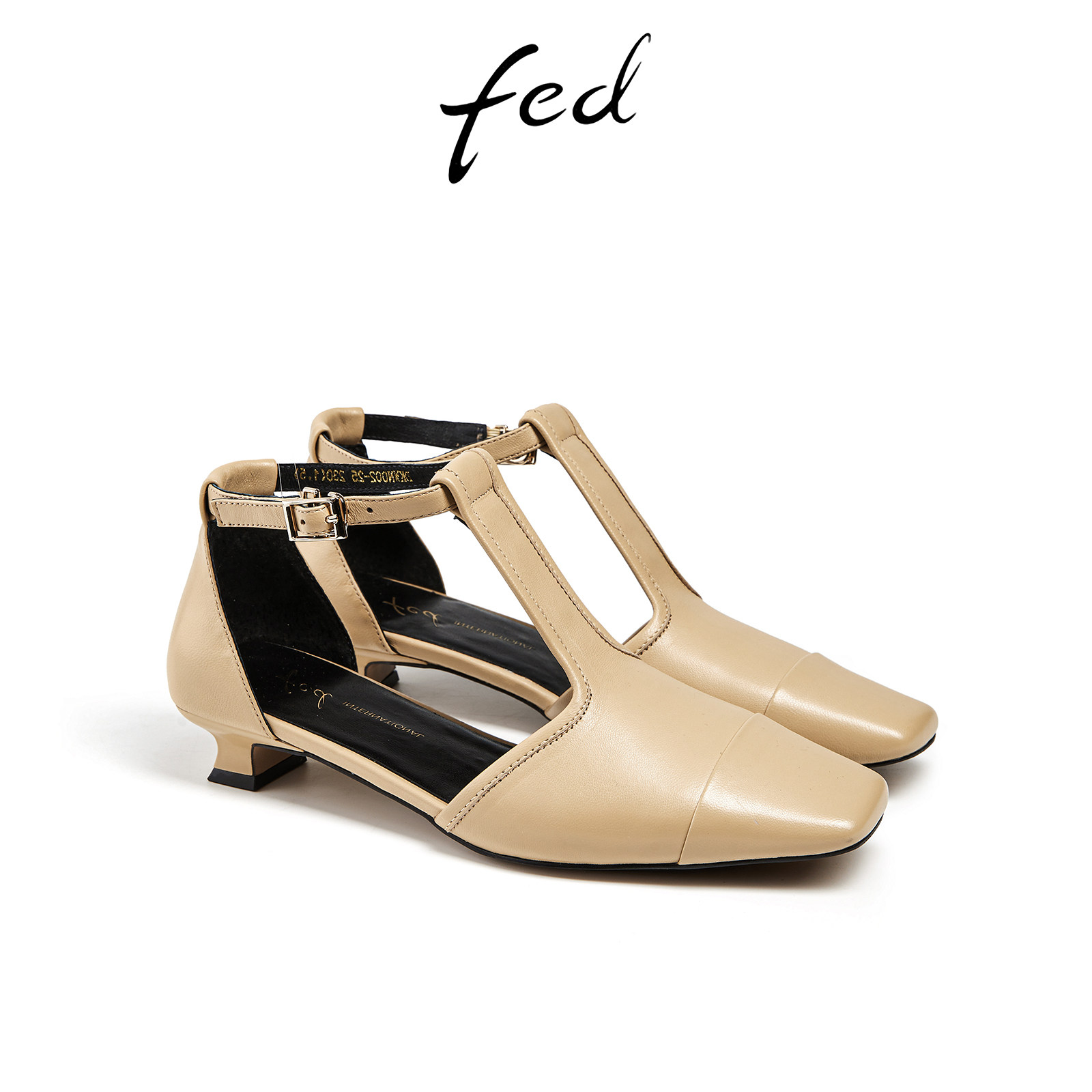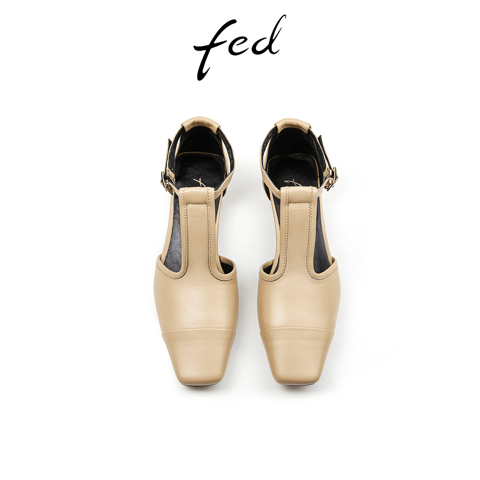 fed法式中空凉鞋夏季新款女鞋真皮方头玛丽珍鞋女款D0525-YAB002