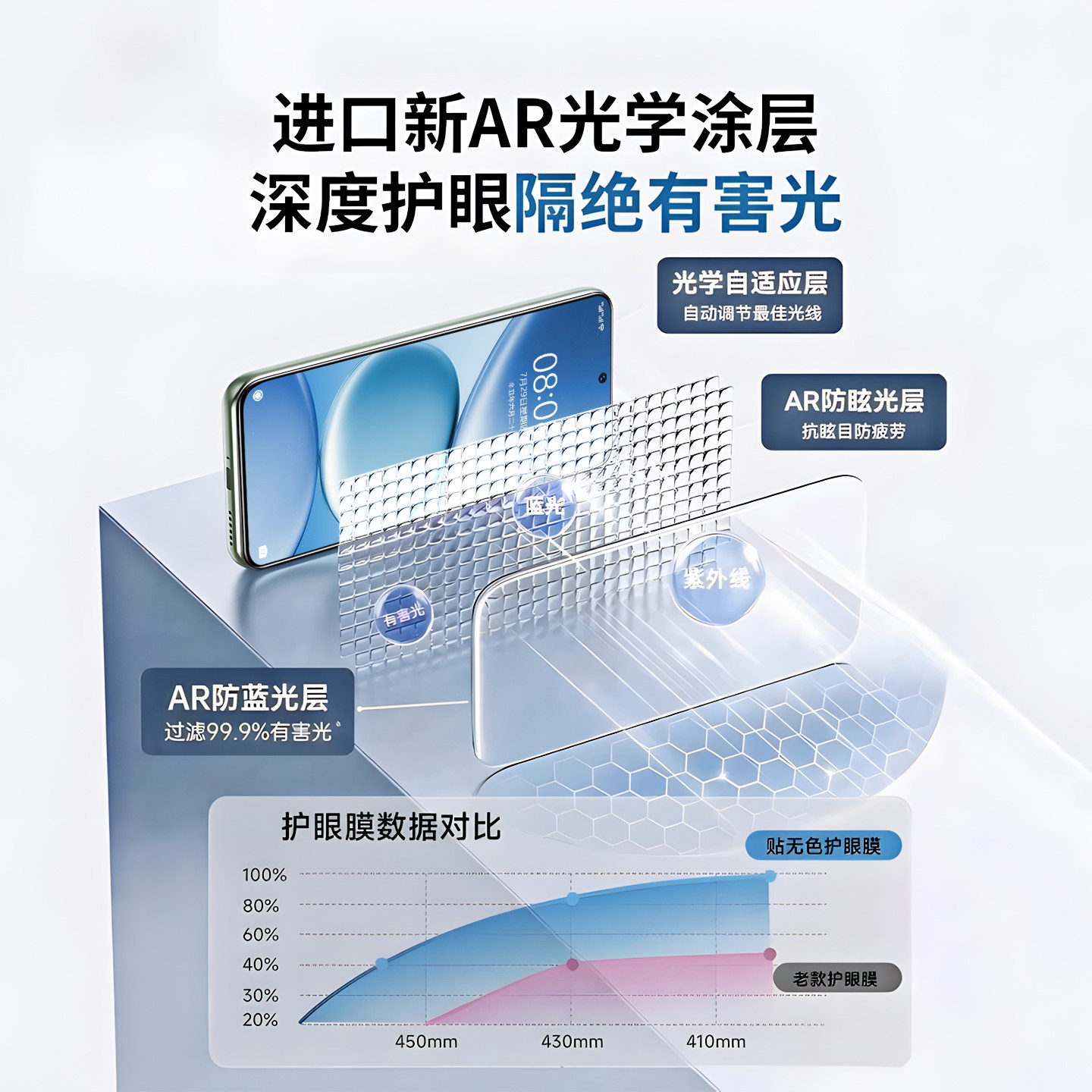 AR护眼康宁玻璃 原屏超清 防爆不碎边 贴坏