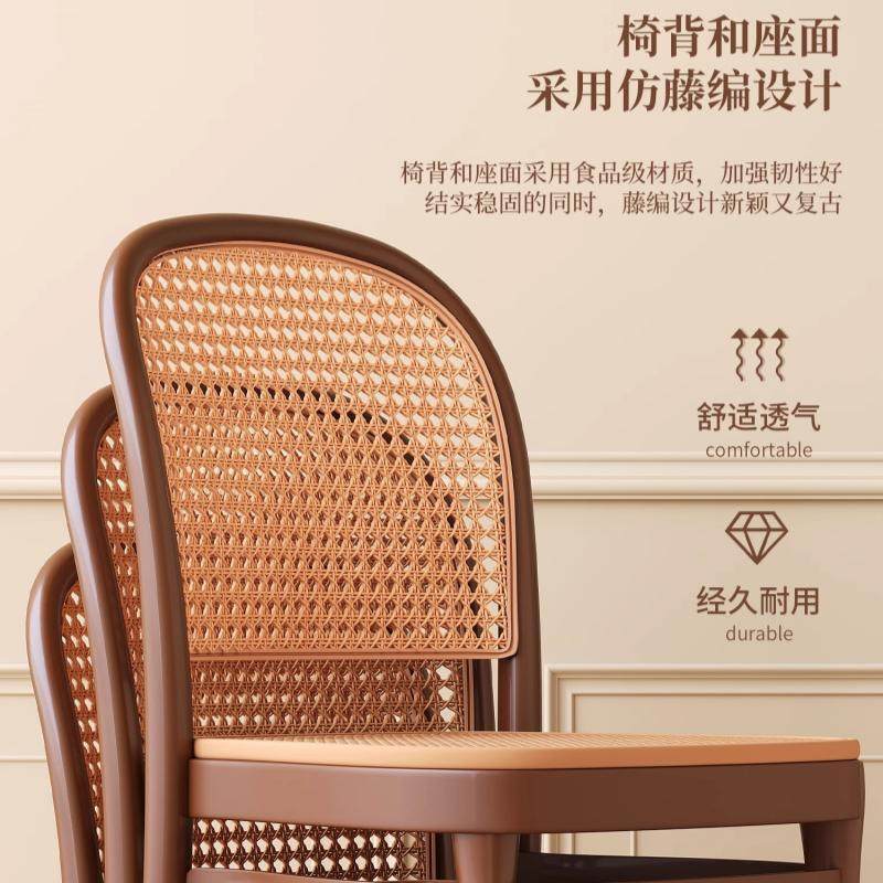 2025新北欧塑料藤编椅子叠放靠背椅商用餐厅户外家用网红餐椅休闲