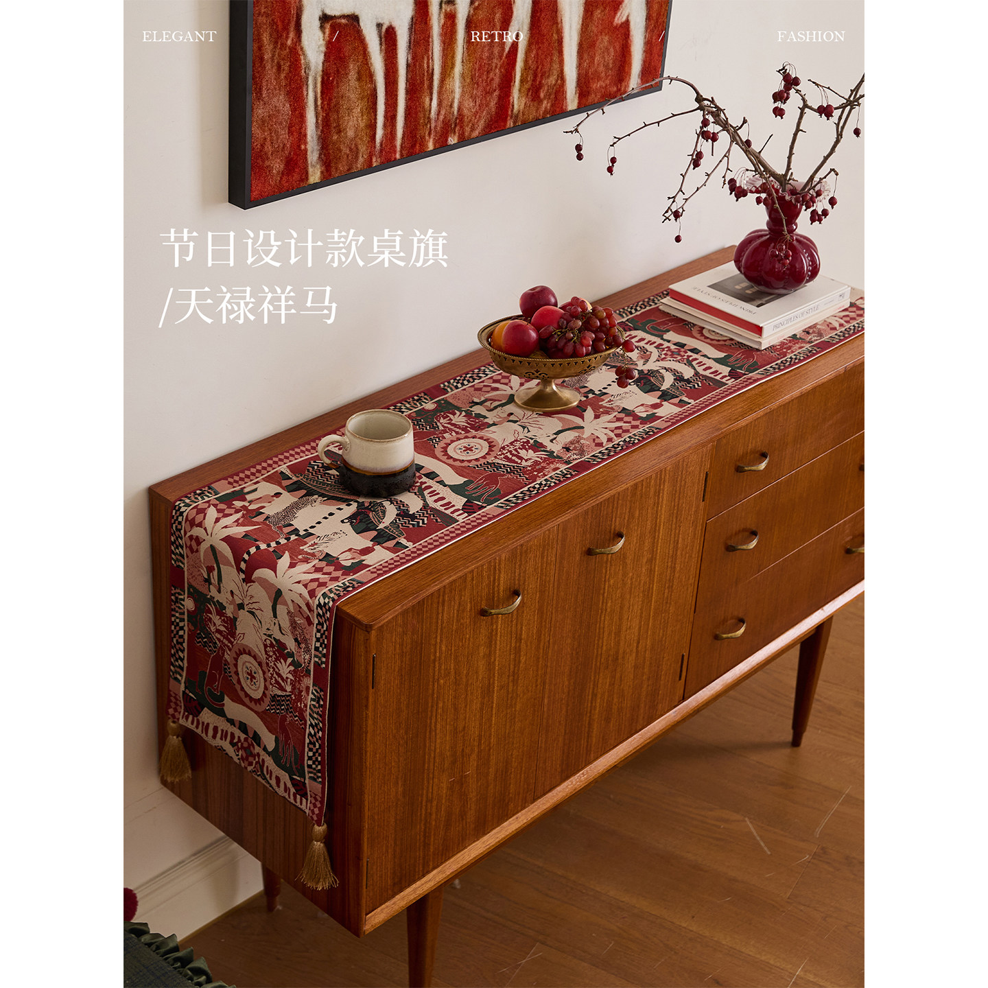 蜡笔派餐桌桌旗欧式复古轻奢氛围马元素新款餐边柜电视柜长条盖布