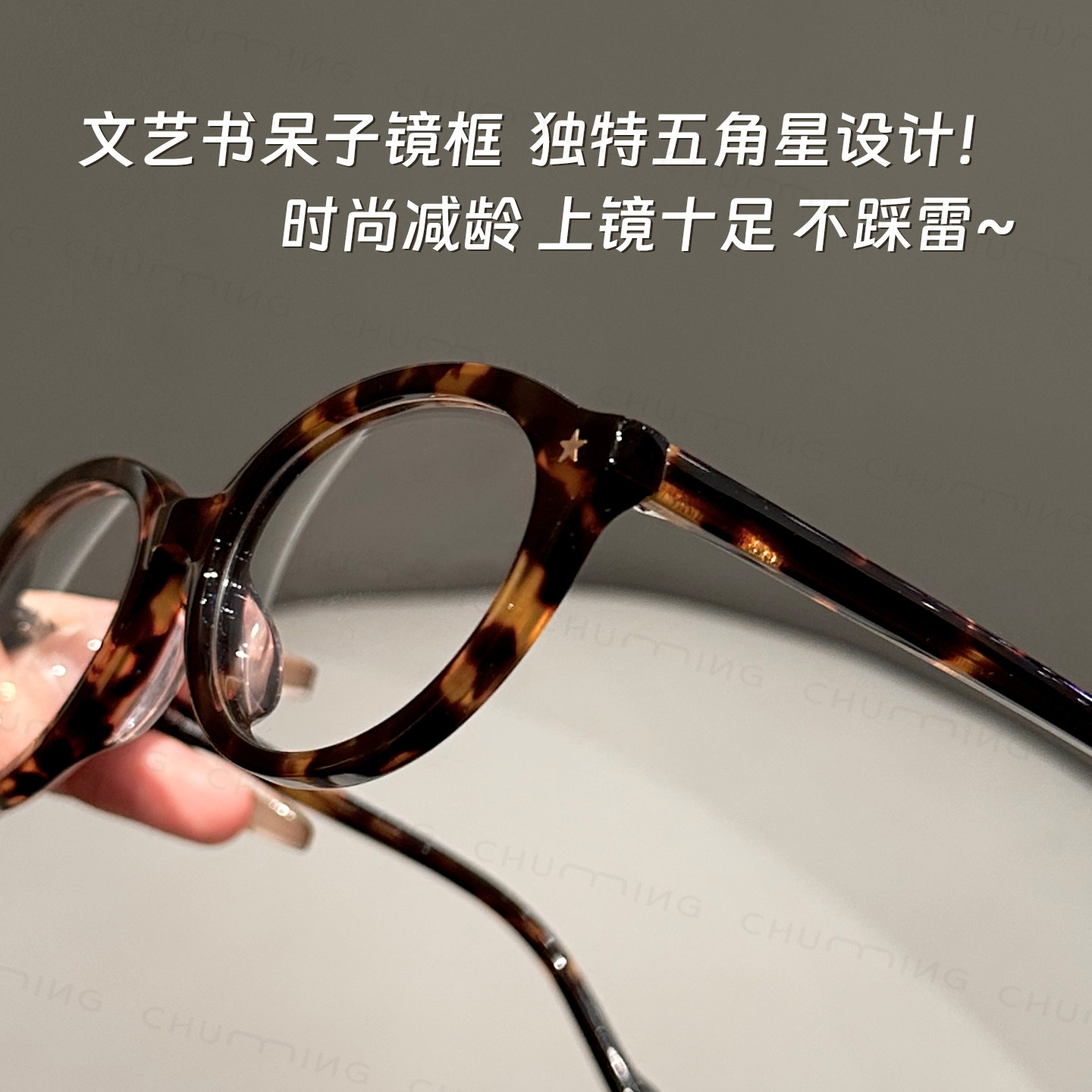 板材五角星玳瑁书呆子眼镜近视女可配度数防蓝光素颜神器眼睛框架