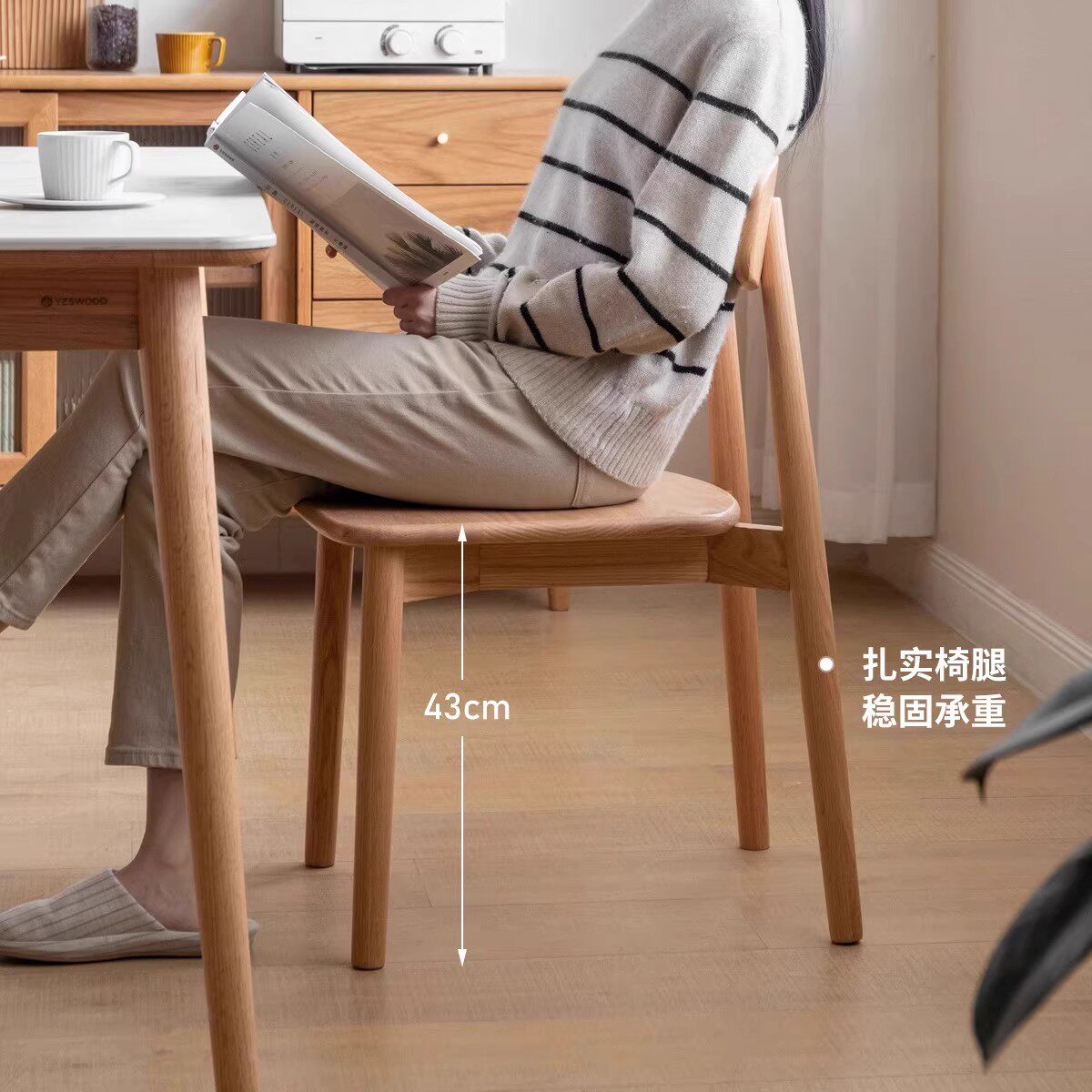 北欧实木餐椅家用现代简约靠背椅子餐厅酒店高级感原木软包餐桌椅