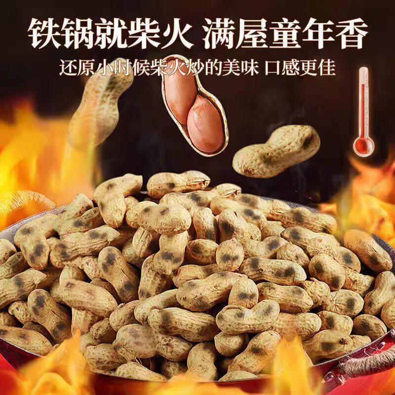 铁锅柴火炒花生2025新货现炒现发农家原味红皮花生下酒菜年货新鲜