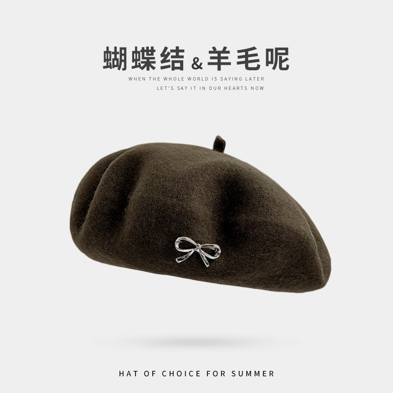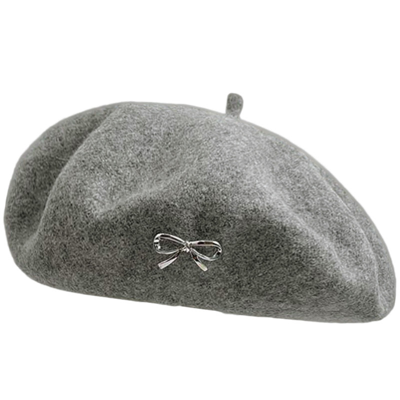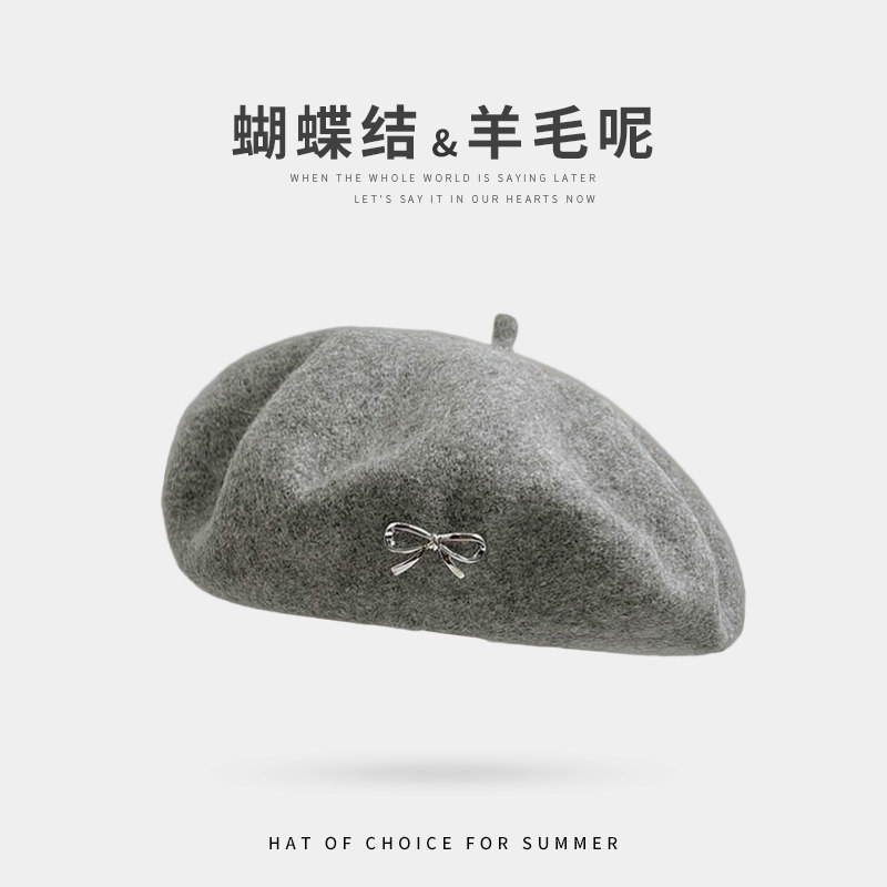 韩系羊毛呢贝雷帽子女秋冬季高级感甜美可爱画家帽灰色粉色户外