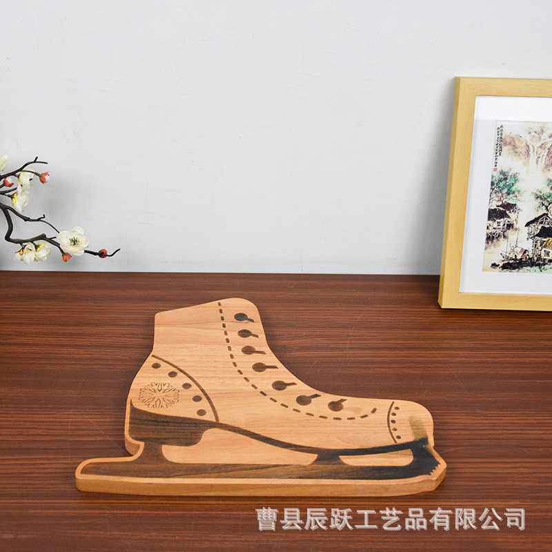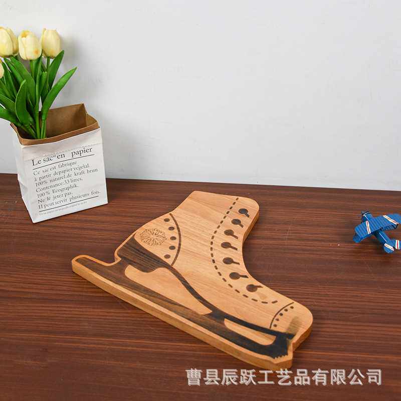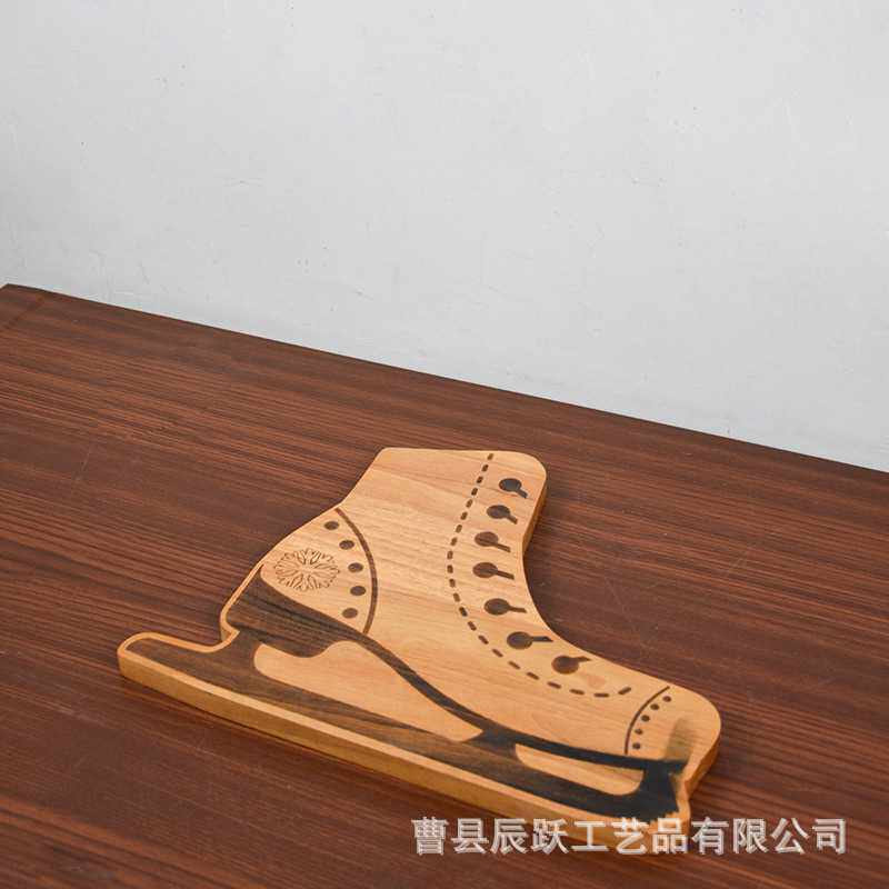 亚马逊新款滑冰鞋造型实木菜板熟食切菜板运动风奶酪板派对木砧板