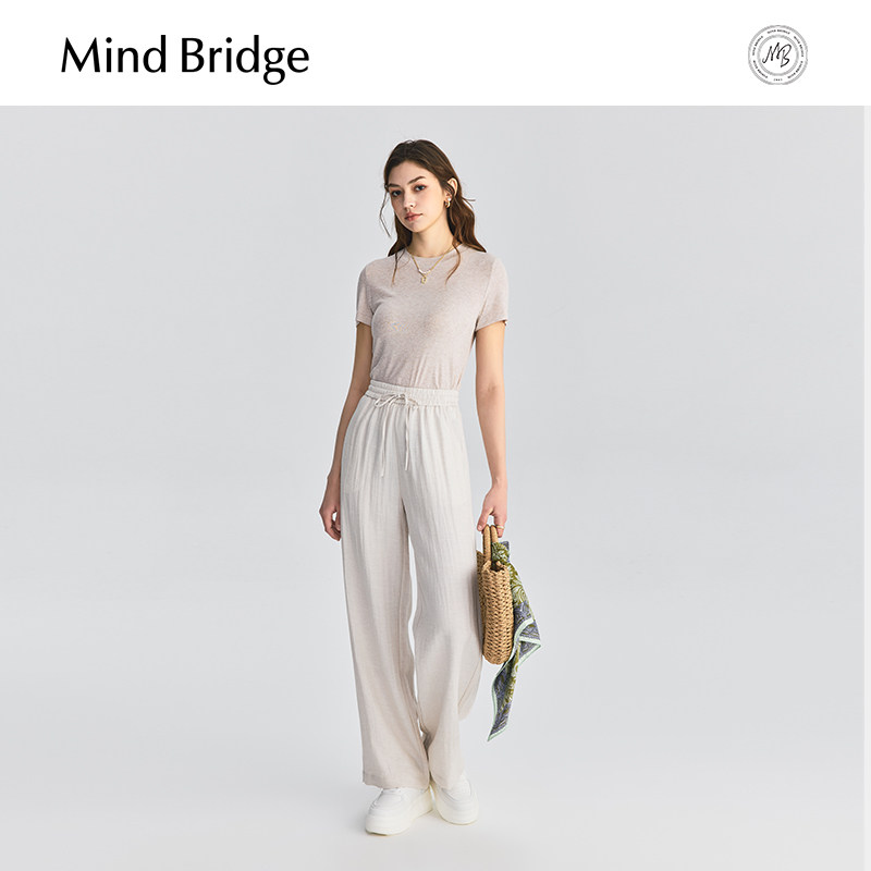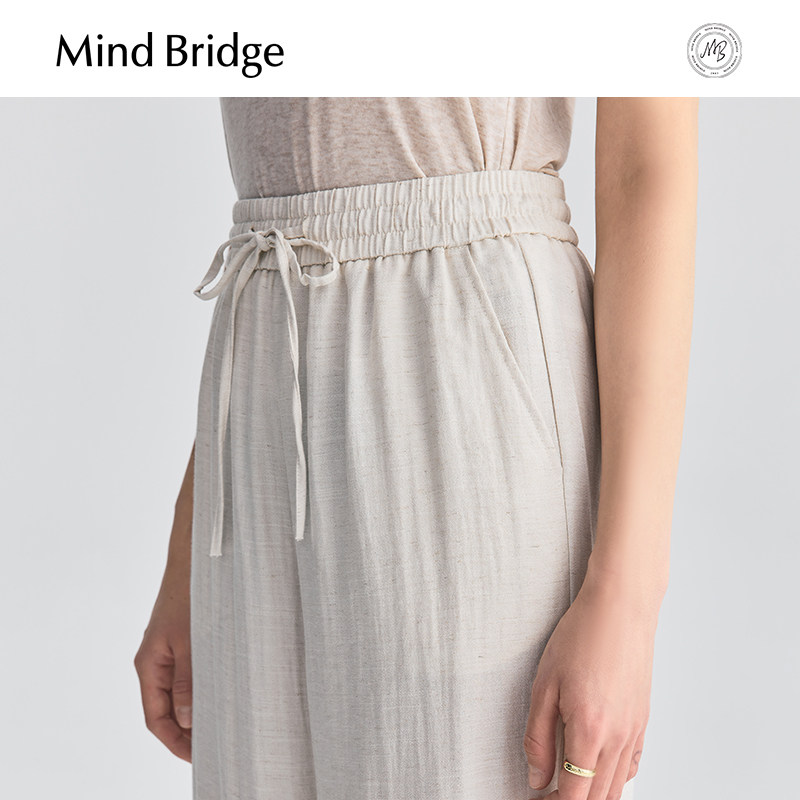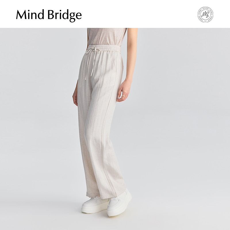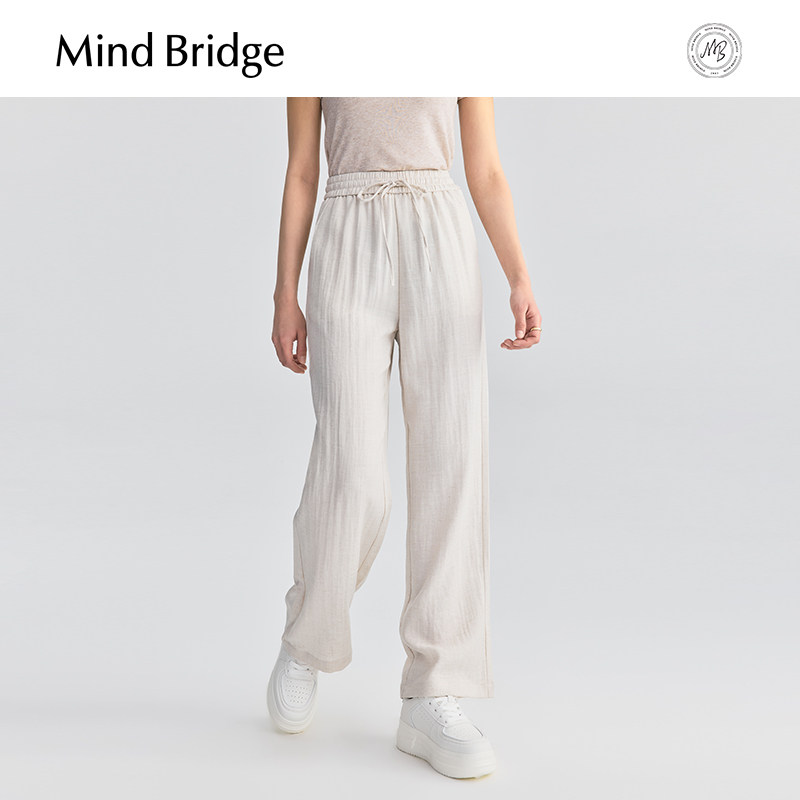 MindBridge【亚麻】女士松弛感宽松直筒裤2025夏薄款休闲纯色长裤