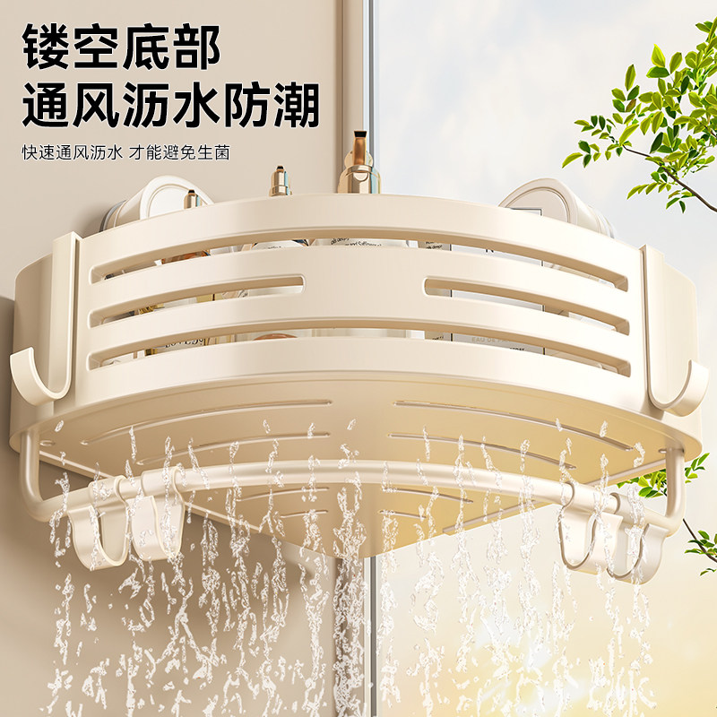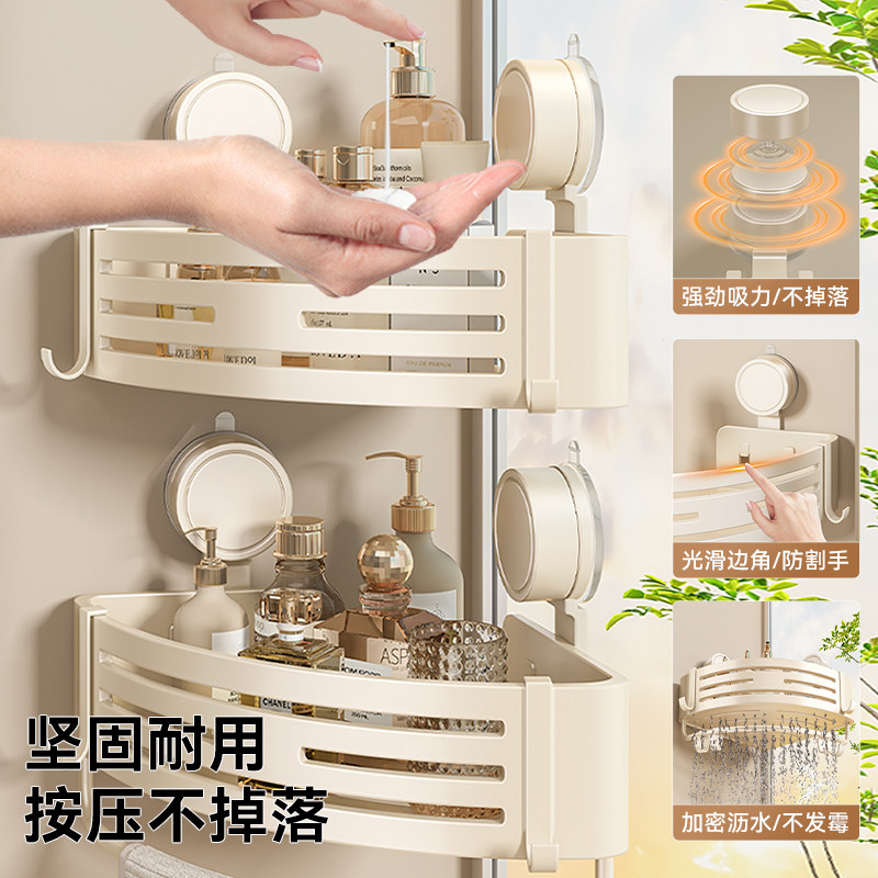 百悍奶白吸盘三角架置物架角篮卫生间免打孔收纳架浴室厕所放置架