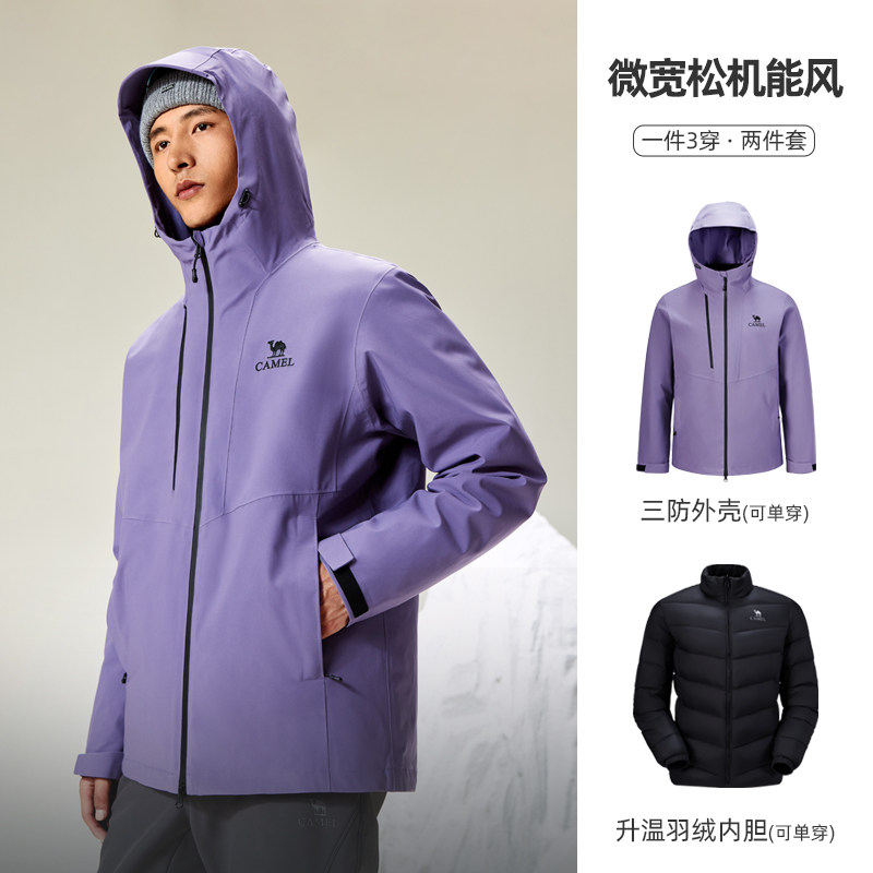 骆驼男装夹克春秋保暖三合一户外三防冲锋衣外套内胆防水徒步登山