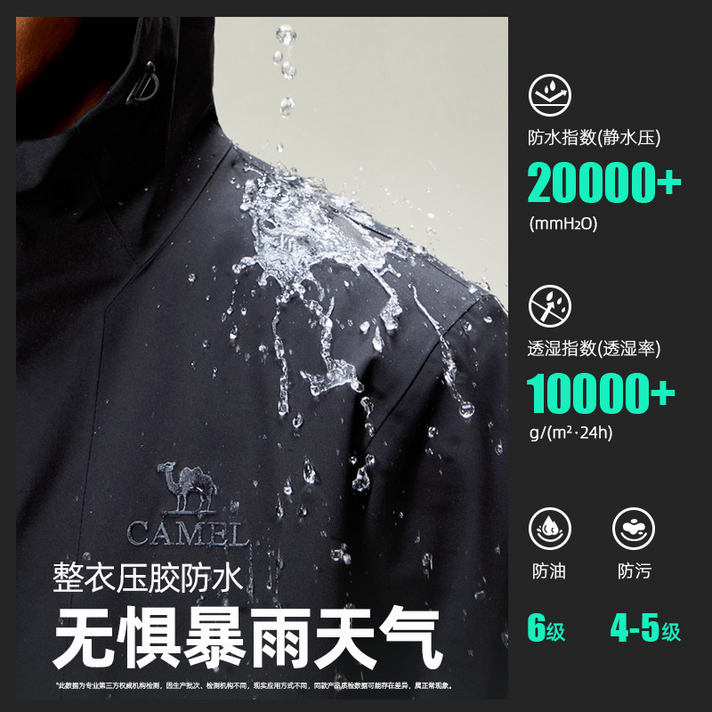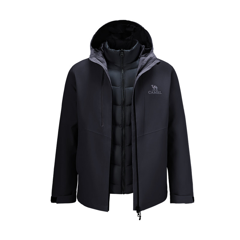 骆驼三合一冲锋衣男女户外羽绒内胆暴雨级防风防水黑色登山服外套