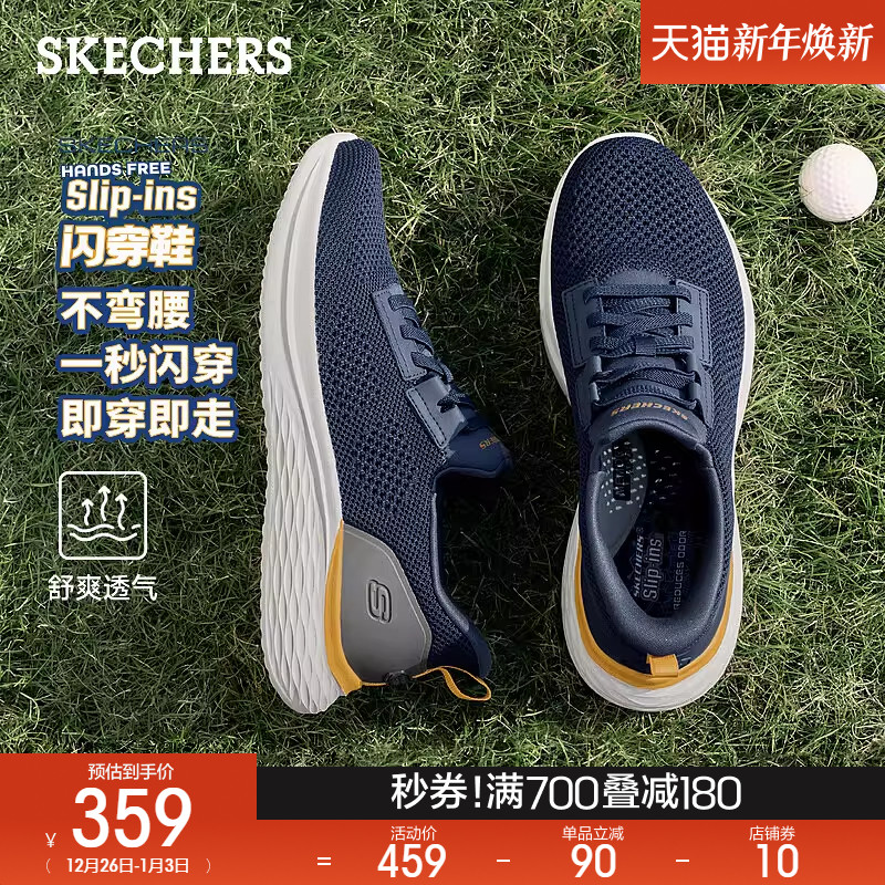 斯凯奇闪穿鞋2025夏季新款男一脚蹬运动休闲鞋透气网面健步鞋回弹
