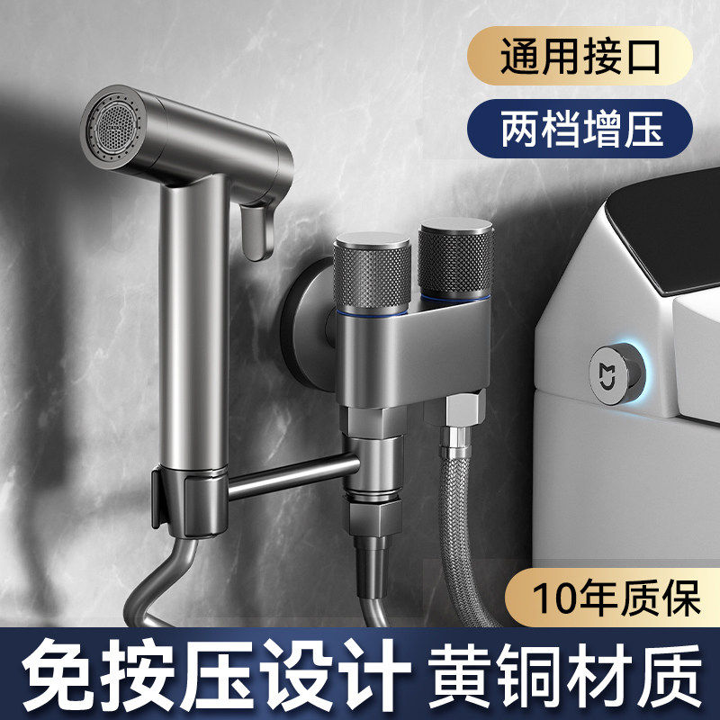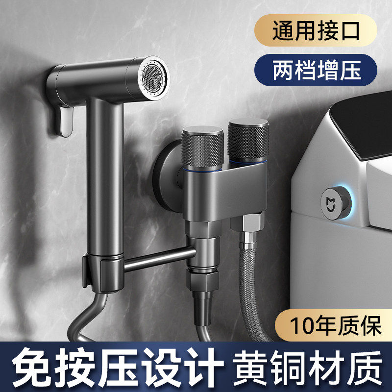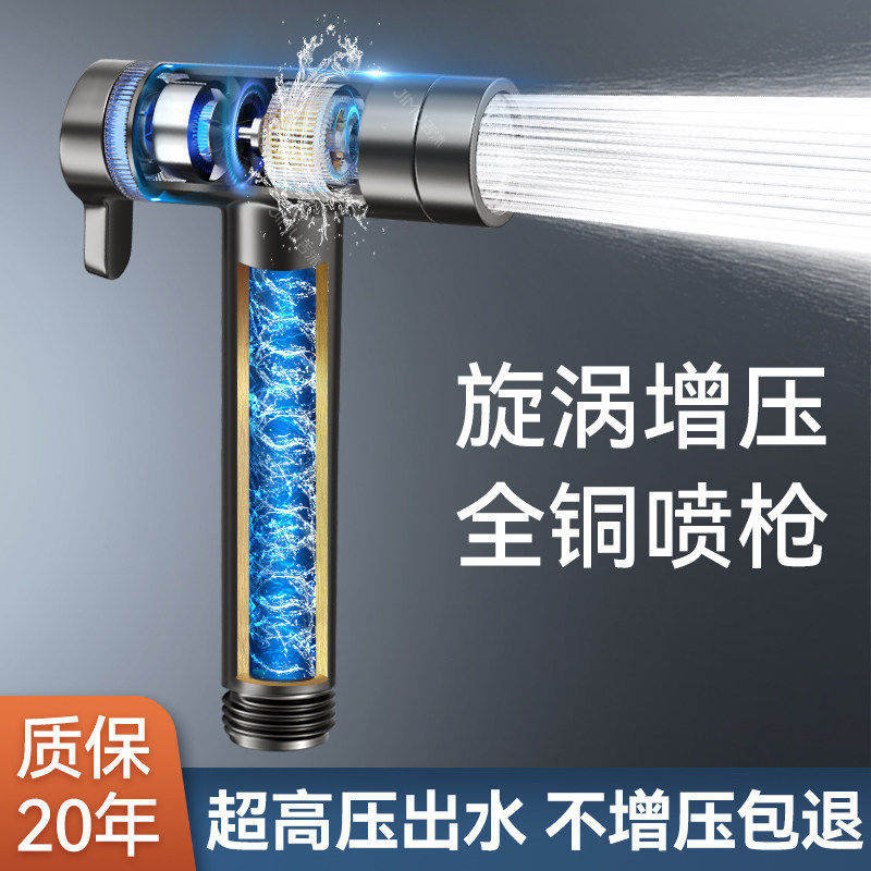 涡轮增压花洒喷枪水龙头马桶伴侣一进二出卫生间冲洗水枪高压角阀