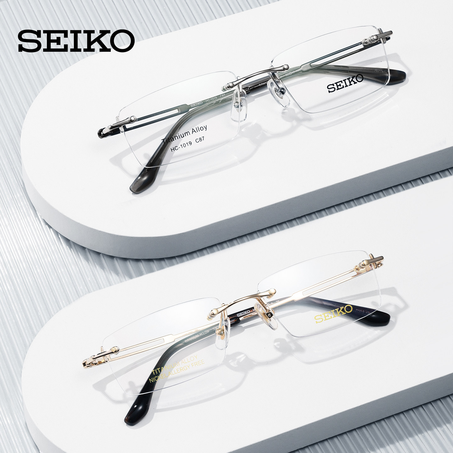 SEIKO精工眼镜框商务时尚斯文无框钛合金镜架可配近视镜片HC1019