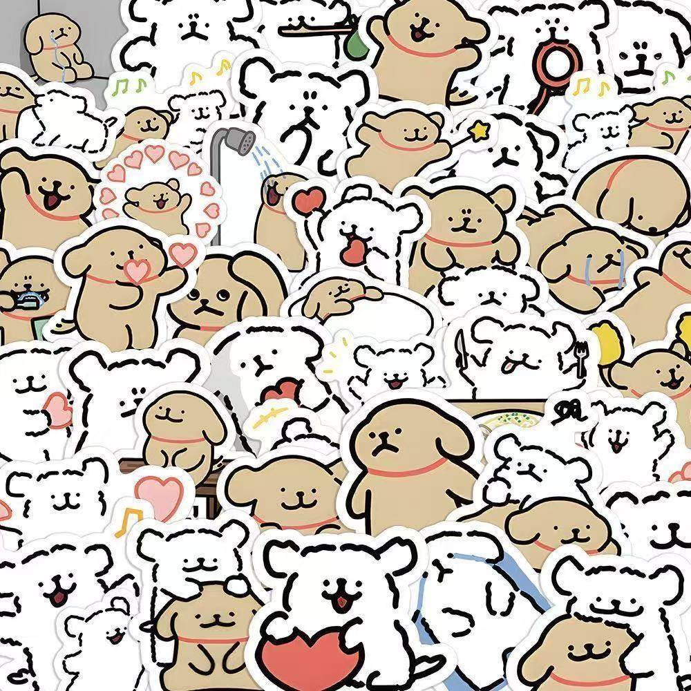 马尔济斯卡通可爱线条表情小狗手账贴纸手机装饰diy贴画防水