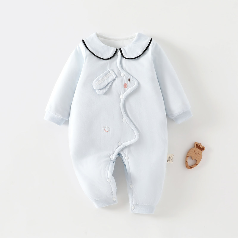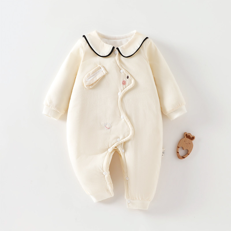 婧麒新生儿婴儿衣服秋冬夹棉满月纯棉初生宝宝秋装连体衣a类爬服