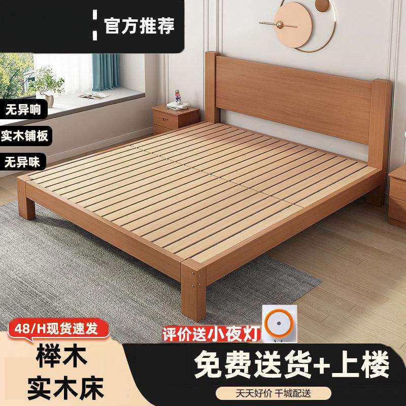 榉木实木床双人1.8米排骨架床简约无床头1.5m家用板式单人床