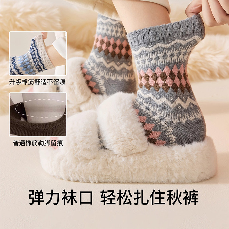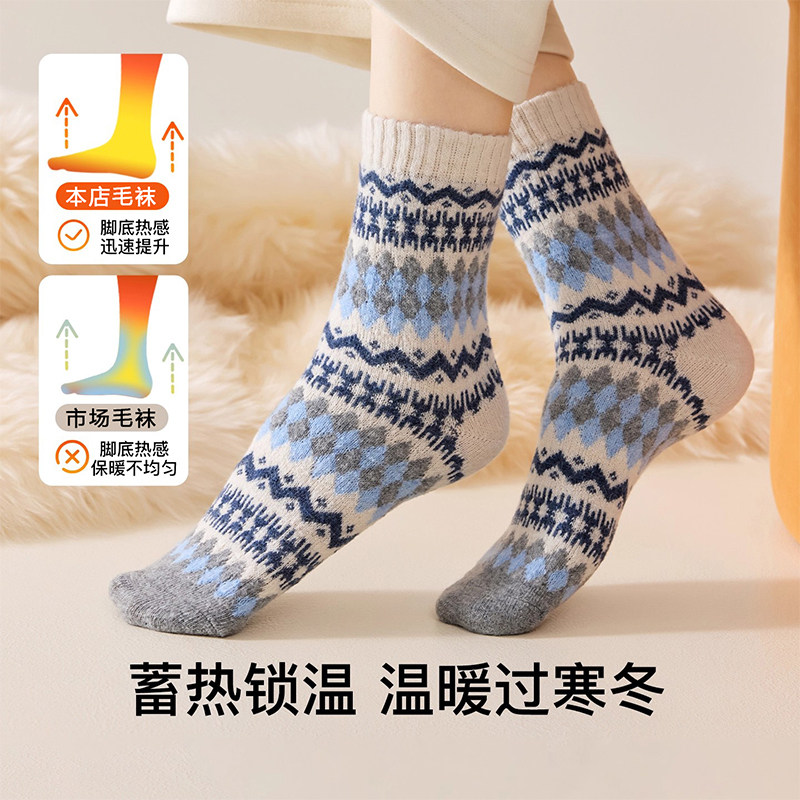 复古费尔岛新疆袜子女士秋冬季中筒袜加厚保暖冬天咖色仿羊毛长袜