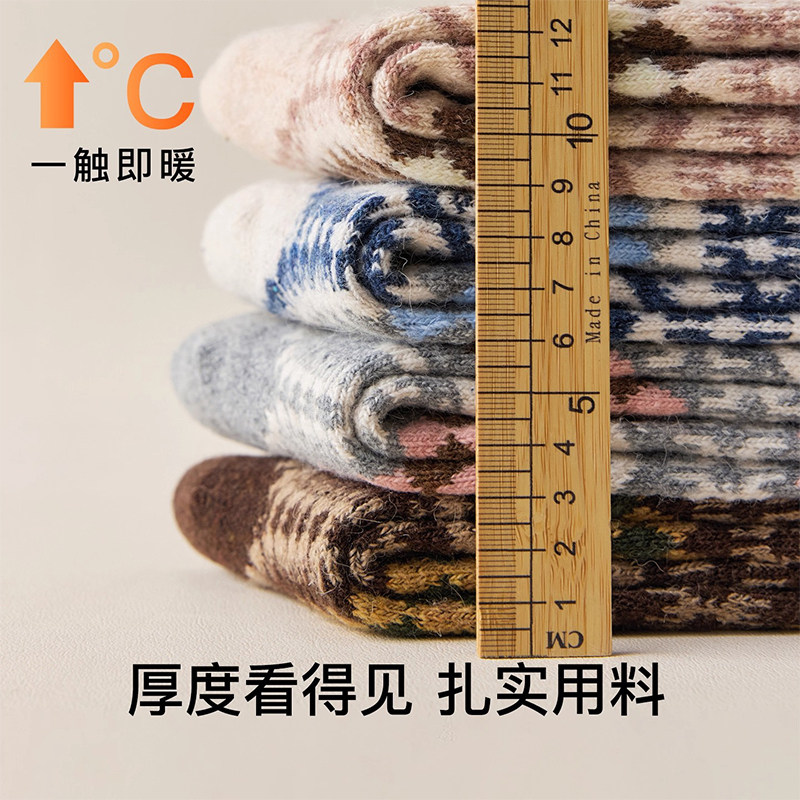 耐尔绵羊毛袜子女秋冬长袜加厚保暖复古百搭中筒袜ins潮堆堆袜