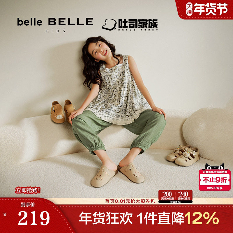 明星同款百丽儿童鞋半岛吐司夏新款勃肯半包可外穿穆勒鞋84026B75