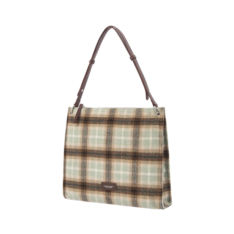 森马包包托特包女2024新款经典格纹单肩包复古手提包大容量软袋潮
