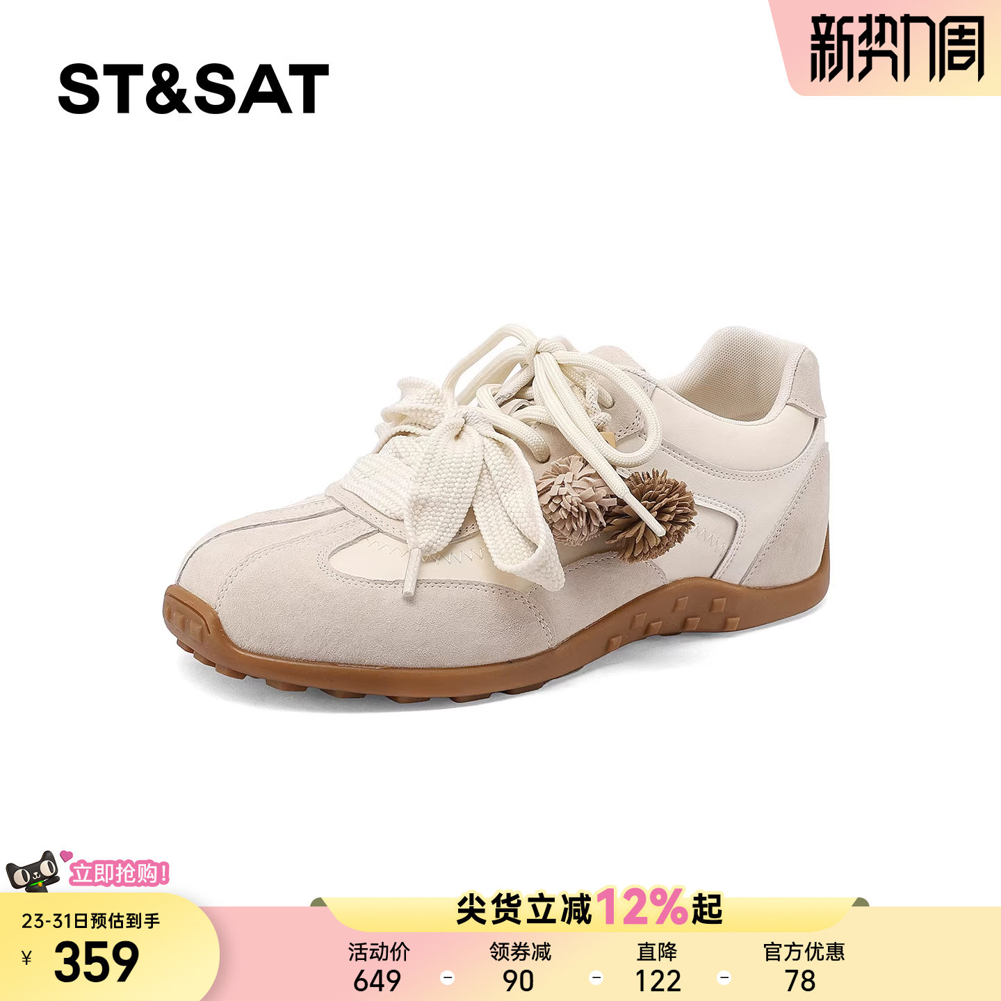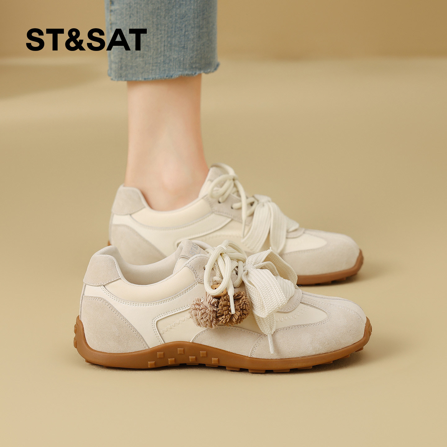 星期六显脚小拼色德训鞋女2026春季新款双鞋带百搭通勤休闲运动鞋