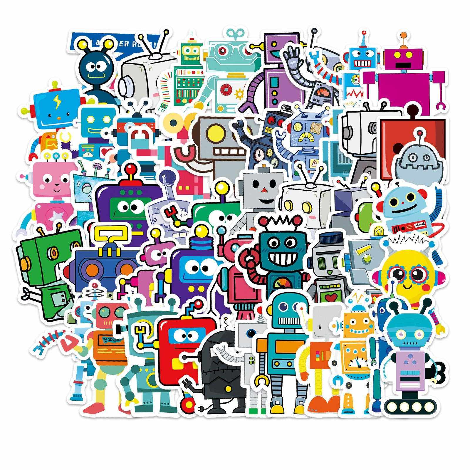 新款直销51张手账机器人行李箱贴纸涂鸦贴纸笔记本 时尚滑板车冰