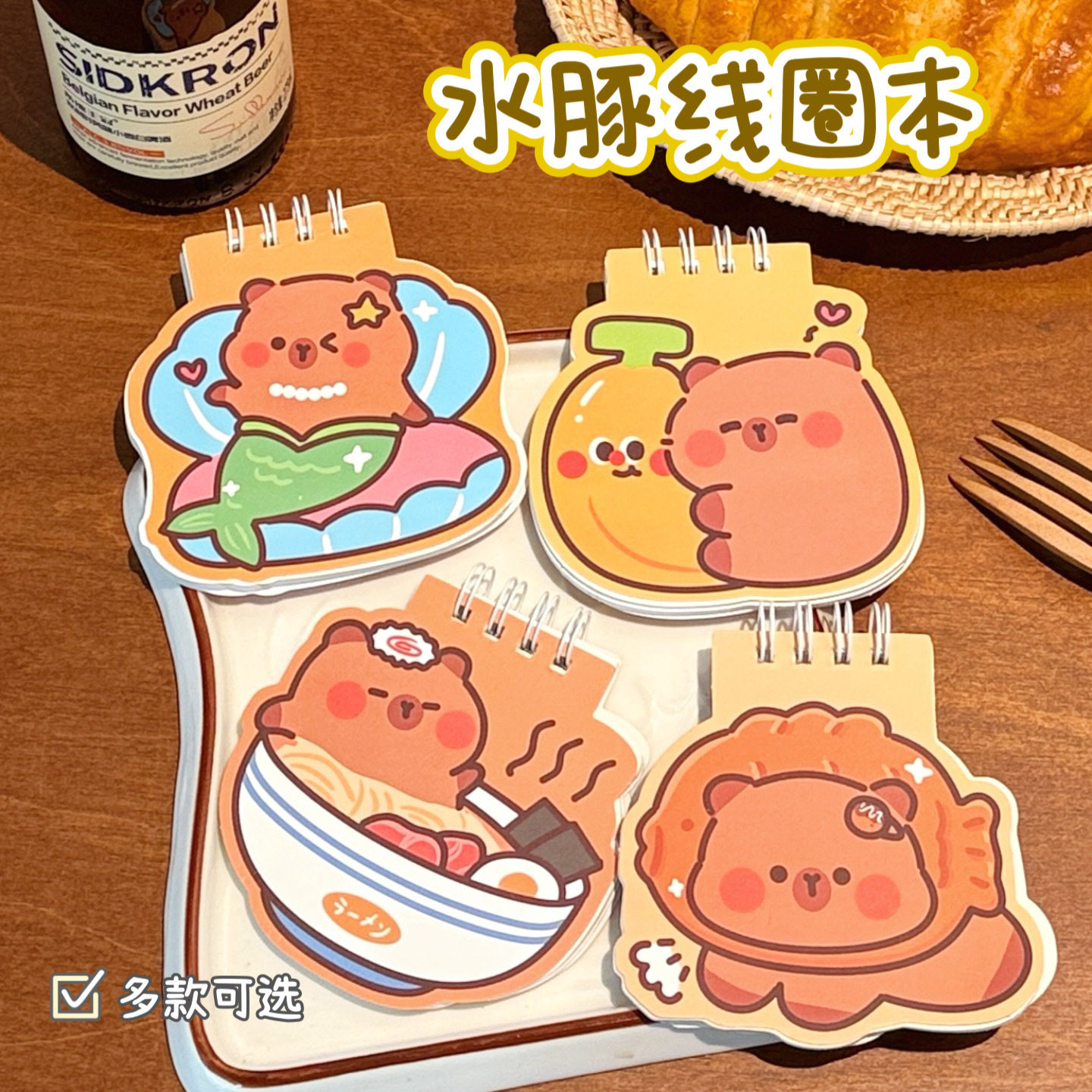 个性创意卡通小巧线圈本学生高颜值便签本便携水豚异型笔记本文具