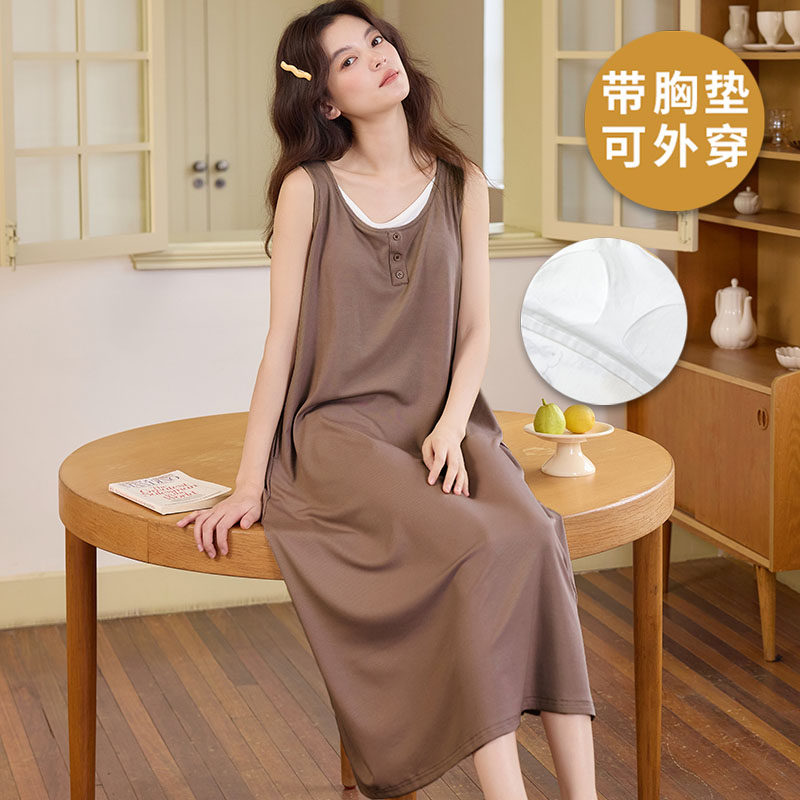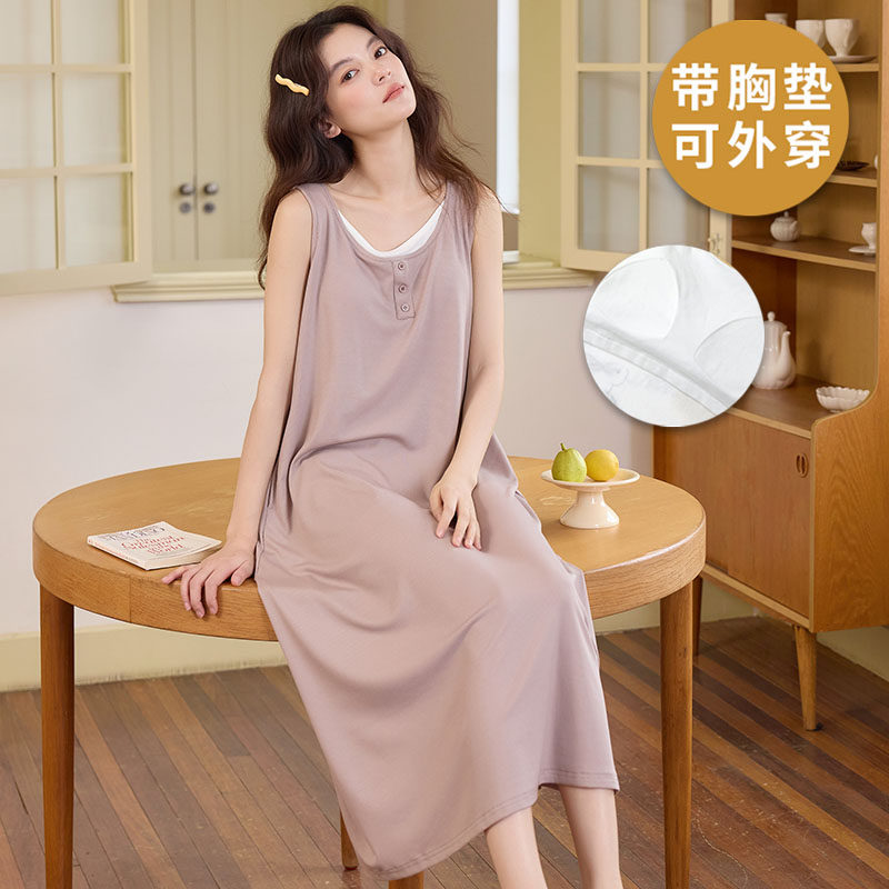 蕉内棉棉300Sleep女士睡裙带胸垫棉可外穿带杯长袖家居服吊带裙
