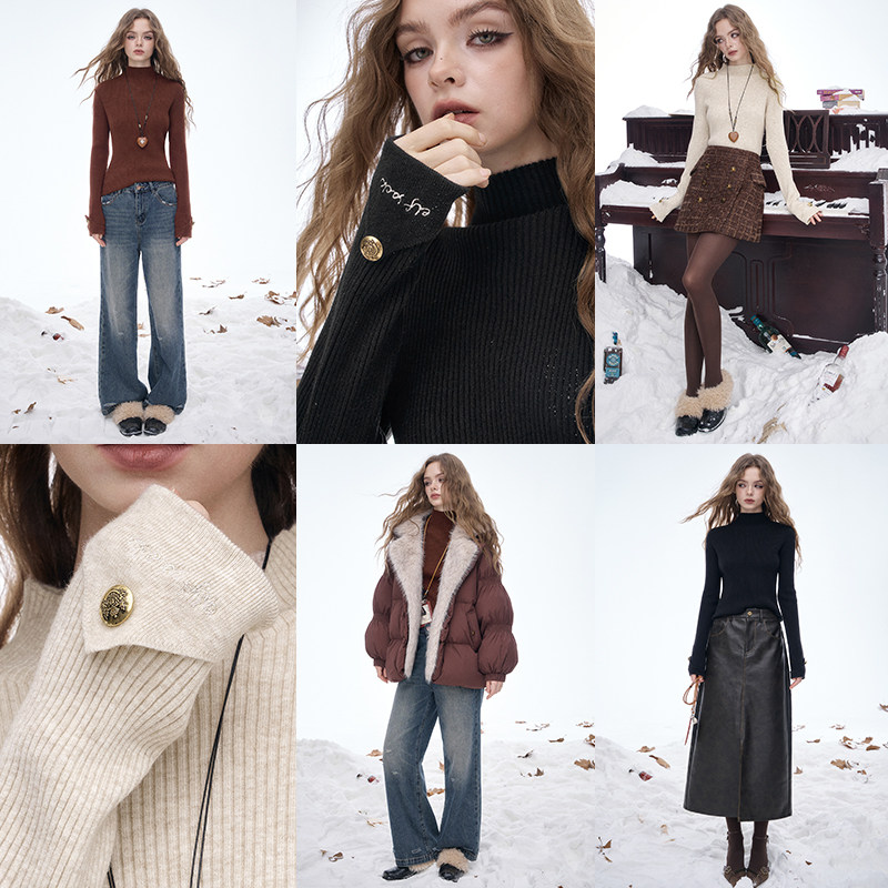 妖精的口袋韩系修身长袖针织衫女2025秋冬新款修身打底衫内搭上衣