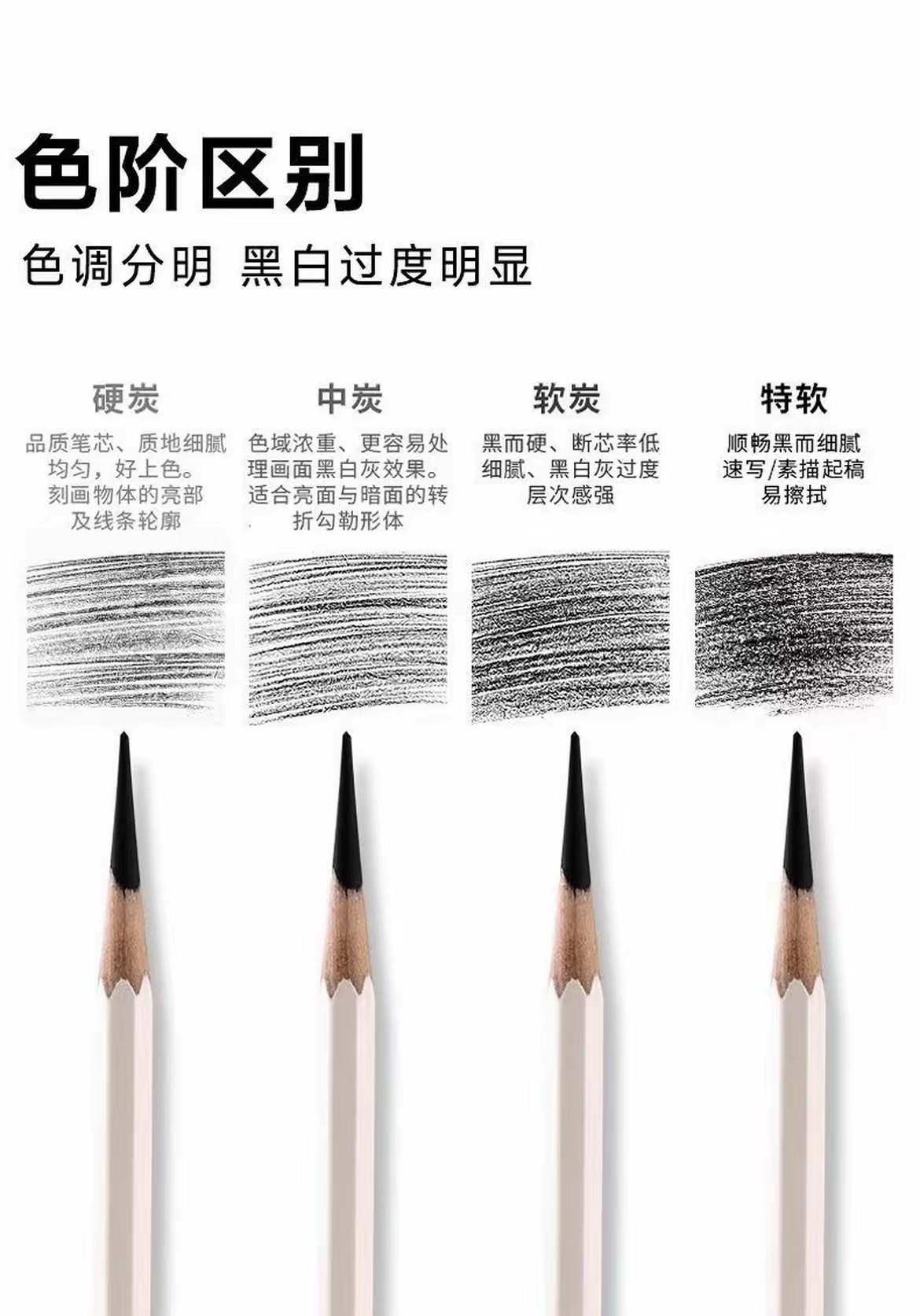 炭笔软中硬组合套装零基础绘画绘画垫油画棒压痕笔高光笔削笔刀
