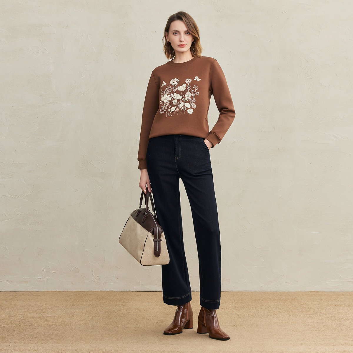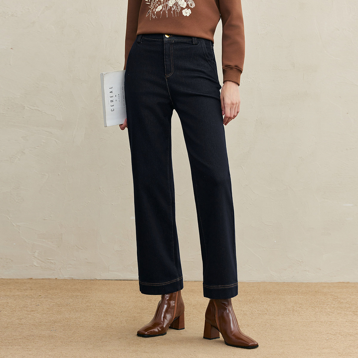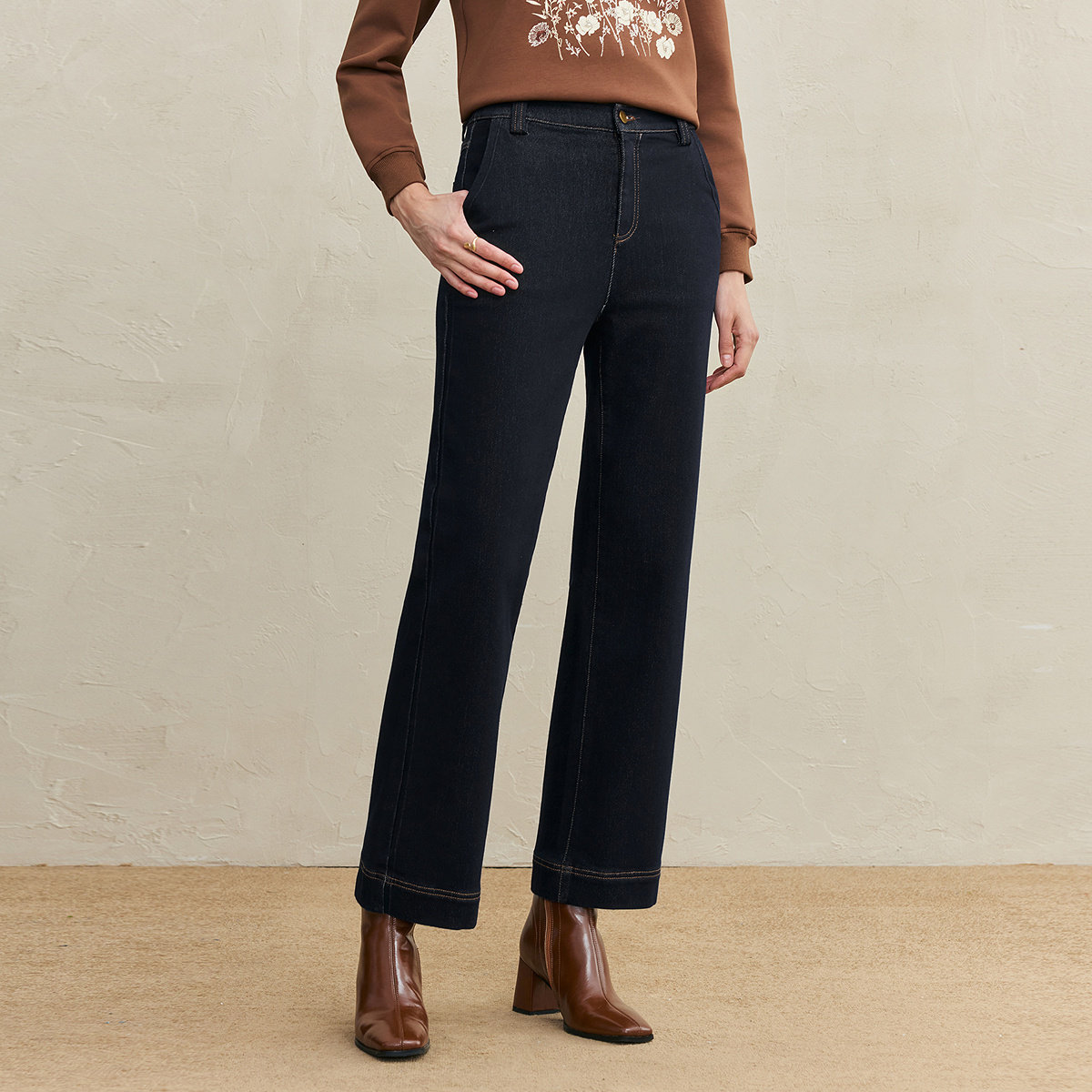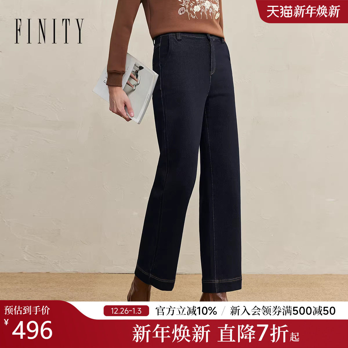 FINITY菲妮迪牛仔裤2025年冬季新款简约棉质直筒垂感通勤长裤女士
